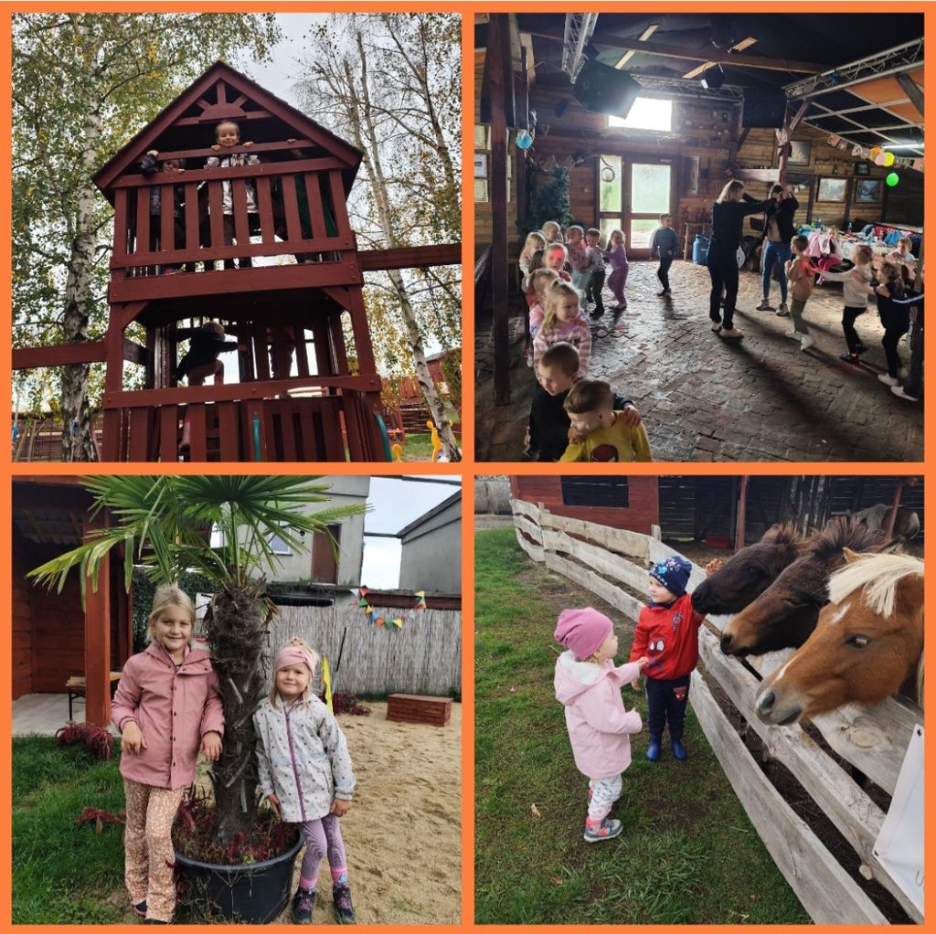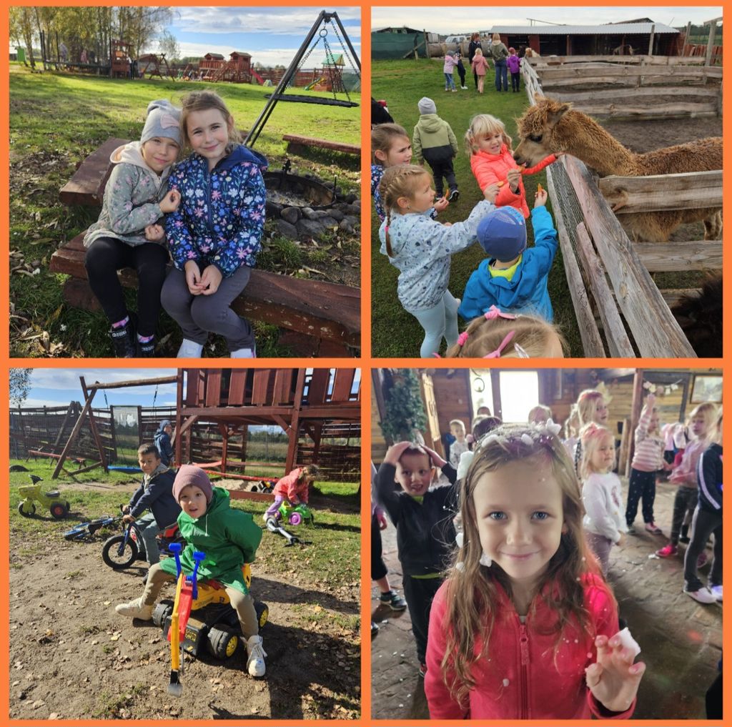 W dniu 10.10. 2024 przedszkolaki wybrały się na długo wyczekiwaną wycieczkę do ,,Osady Danieli''. Dzieci mogły poznać wiele ciekawostek dotyczących zwierząt. Miały możliwość karmienia danieli, owiec, lam, kucyków, kaczek oraz pawi. Ponadto dzieci aktywnie spędzały czas, bawiąc się na placu zabaw. Na koniec pobytu odbyła się szalona dyskoteka, był popcorn oraz Piana Party. Przedszkolaki wróciły pełne pozytywnych wrażeń.