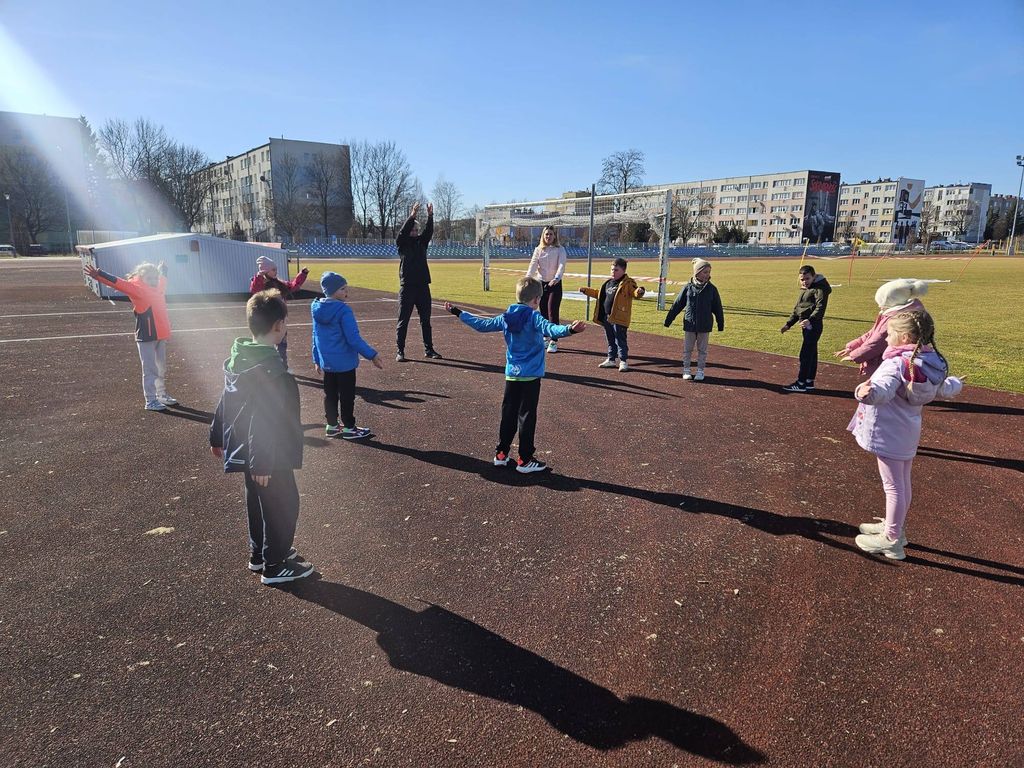 5 marca na stadionie lekkoatletycznym odbyły się zajęcia „Lekkoatletyka dla Smyka”, prowadzone przez panie Weronikę Florian i Emilię Balicką-Ekiert. Dzieci z oddziału przedszkolnego uczyły się, jak prawidłowo startować do biegu oraz wykonywały ćwiczenia ogólnosprawnościowe rozwijające sprawność fizyczną. Było dużo ruchu, uśmiechu i świetnej zabawy!