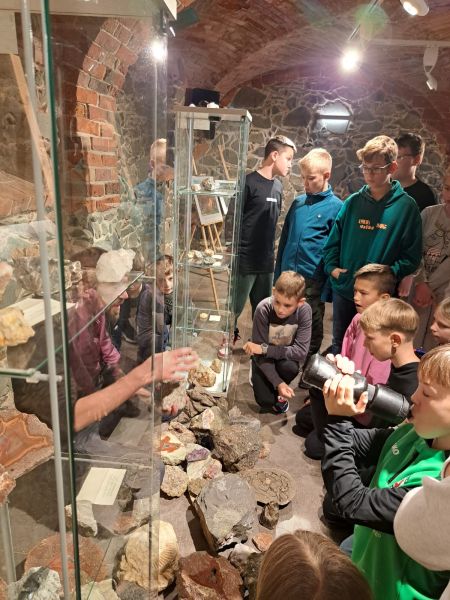 W kolejnych salach edukacyjnych obserwując makiety, modele i multimedia wspomagane wykładem pana przewodnika uczniowie poznali ciekawostki o naszej planecie: jak powstała Ziemia i Układ Słoneczny, jakie właściwości mają skały wokół nas, jakie skutki niesie za sobą erupcja wulkanu, doświadczyli nawet trzęsienia ziemi.