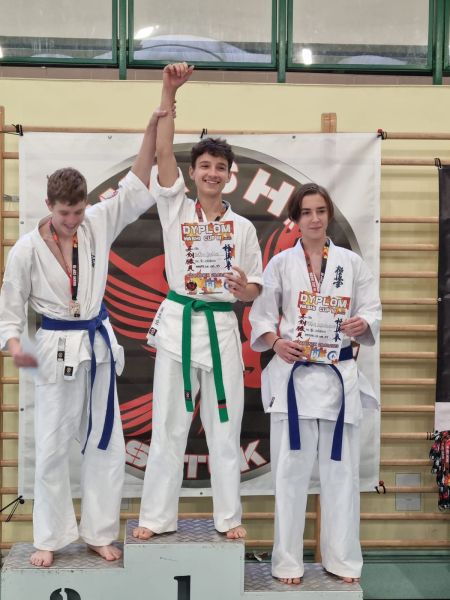 Podczas Mistrzostw Województwa Zachodniopomorskiego w Karate Kyokushin Kenbukai Washi Cup, nasza ekipa w składzie Amelia Karkos zajęła 1 miejsce w kategorii kumite, Bartek Loret 1 miejsce w kata i kumite, Igor Całus 3 miejsce w kata i 1 w kumite, Oliwier Pilichowski 3 miejsce w Kumite, Jakub Bajus 1 miejsce w Kumite oraz Matvii Shevchenko jako debiutant 4 miejsce w kategorii Kumite. Wszystkim bardzo serdecznie gratulujemy Osu!!!