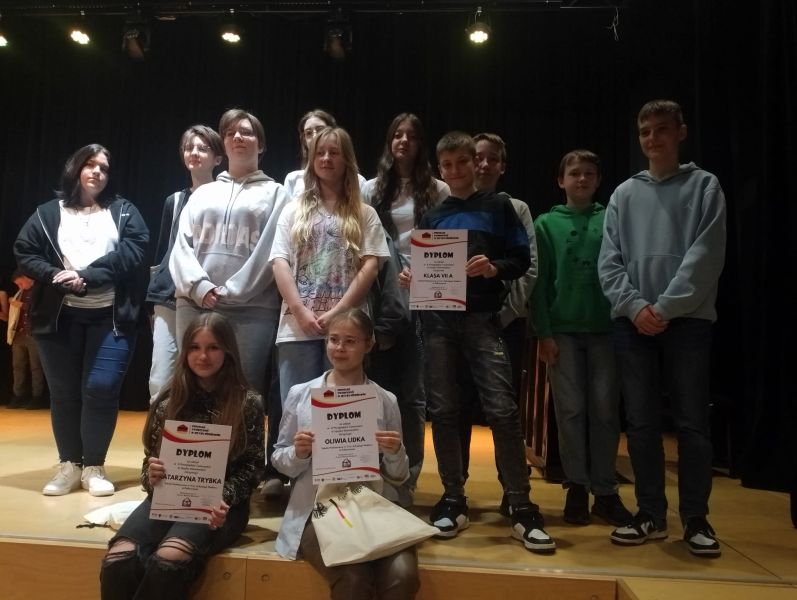 18 kwietnia uczniowie naszej szkoły wystąpili na scenie Centrum Kulturalno – Bibliotecznego FAMA we Wrocławiu w X Przeglądzie Twórczości w Języku Niemieckim. Nasza szkoła – reprezentowana przez grupę uczniów z klasy VII a i Katarzynę Trybkę z klasy VI a - należała do 27 placówek oświatowych (przedszkoli, szkół podstawowych, średnich) biorących udział w przeglądzie. Kasia zaprezentowała muzyczną wersją wiersza „Erlkönig” Johanna Wolfganga von Gothego, a Oliwia Lidka z kl. VII a wyrecytowała ten sam wiersz w języku polskim, w przekładzie Wisławy Szymborskiej - polski tytuł „Król Olch”. Występ Oliwii urozmaicono ilustracjami do wiersza, wykonanymi przez Zuzannę Mikołajczyk z klasy VII a. Dodatkowo uczniowie zaprezentowali piosenkę „Der Körperteile Blues.” Występy naszych uczniów bardzo podobały się publiczności i organizatorom. Wszyscy uczestnicy otrzymali nagrody oraz pamiątkowe dyplomy. Gratuluję uczniom i dziękuję wszystkim, którzy pomogli w przygotowaniach: pani Joannie Glapińskiej i pani Justynie Trybce, a pani Jolancie Baran za opiekę nad uczniami w trakcie pobytu we Wrocławiu. Dziękuję też Dyrekcji naszej szkoły, za umożliwienie wyjazdu na Przegląd.