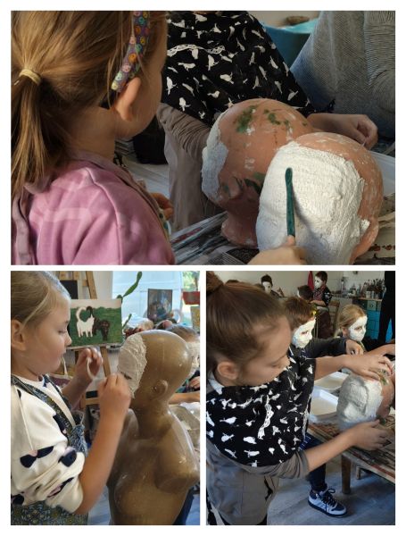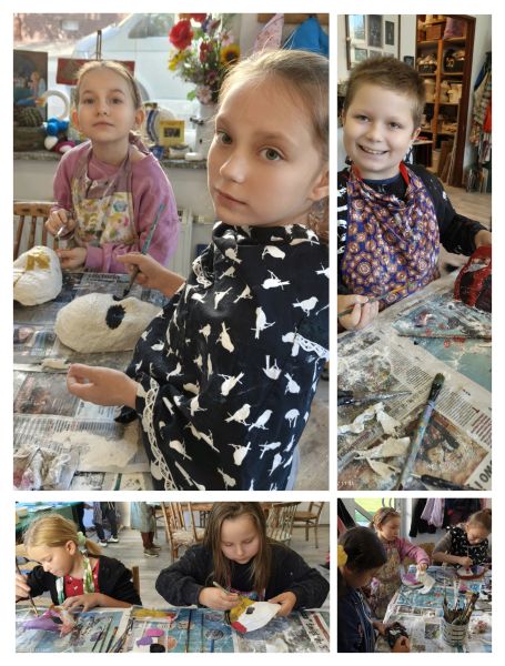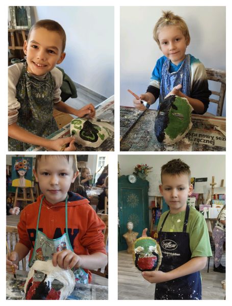 17 października uczniowie będący pod opieką pedagoga – p. Marleny Rudnickiej i psychologa – p. Sary Łago wzięli udział w wyjazdowych warsztatach integracyjnych. Pierwszą częścią programu był wspólny spacer po lubińskim „Parku Wrocławskim” i spotkanie z jego mieszkańcami, co wywołało w uczniach wiele przyjemnych emocji. Kolejnym punktem wycieczki były warsztaty artystyczne w pracowni EcoArt pod kierunkiem p. Bernardy Gołąb. Dzieci wykonywały na sobie kreatywne i tajemnicze maski gipsowe. Na zakończenie zorganizowano wyjście na pyszną pizzę do restauracji „Verona”. Kolejne zajęcia z p. Bernardą będą kontynuowane w placówce szkolnej, a prace naszych artystów będzie można podziwiać w budynku przy ul. Kominka.
