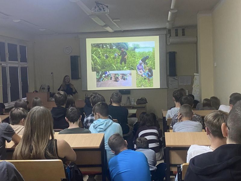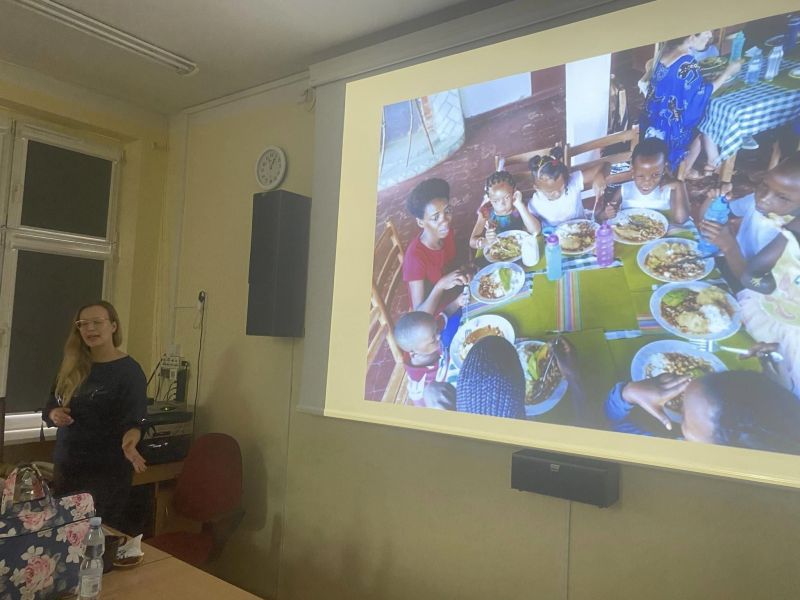 W ramach projektu „Dotykamy ręką świat” odwiedziła naszą szkołę absolwentka - misjonarka Agnieszka Musinguzi - Żukowska. Młodzież klas VII i VIII została zabrana w wirtualną podróż do Afryki, gdzie usłyszała historie niektórych dzieci - Angel, Victorii, Miracle, które są po opieką Fundacji EKA AFRICA oraz pomoc niesiona przez te fundację wielu osobom biednym, chorym i samotnym.