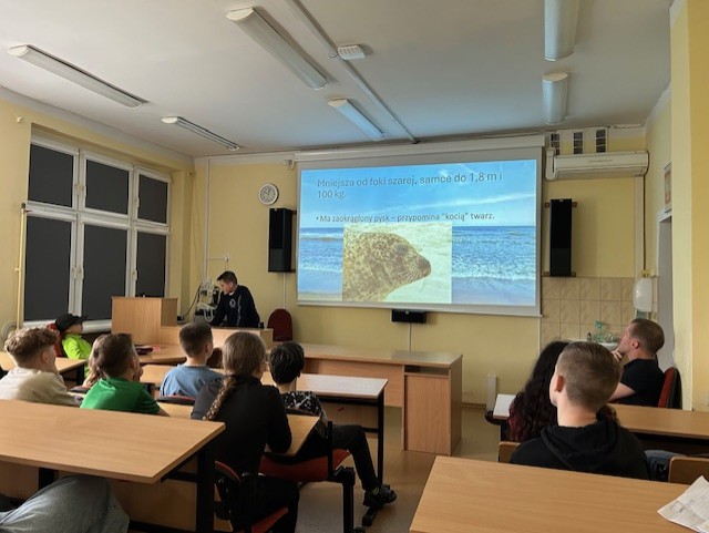 9 czerwca uczniowie klas 4–7 mieli okazję uczestniczyć w ciekawej prezentacji na temat zwierzęcia, jakim jest foka. Prezentację przygotował uczeń klasy 6c – Brajan Kraczka. Uczeń przedstawił różne gatunki fok, które zamieszkują Bałtyk, opowiedział o różnicach w ich wyglądzie oraz o roli, jaką pełnią w ekosystemie. Dodatkowo udzielił wskazówek, jak należy postępować w przypadku, gdy zwierzę potrzebuje pomocy. Całą prezentację urozmaicił zdjęciami, filmami oraz grą opartą na wiedzy przedstawionej w trakcie wystąpienia. Dzięki temu wielu uczniów mogło dowiedzieć się więcej o fokach i zainteresować się tymi niezwykłymi zwierzętami. Podczas przerw można było zakupić przekąski i wesprzeć Stację Morską na Półwyspie Helskim, która ratuje zwierzaki w potrzebie. Całą akcję przygotowała kl. 6c pod opieką wychowawcy i nauczyciela biologii.