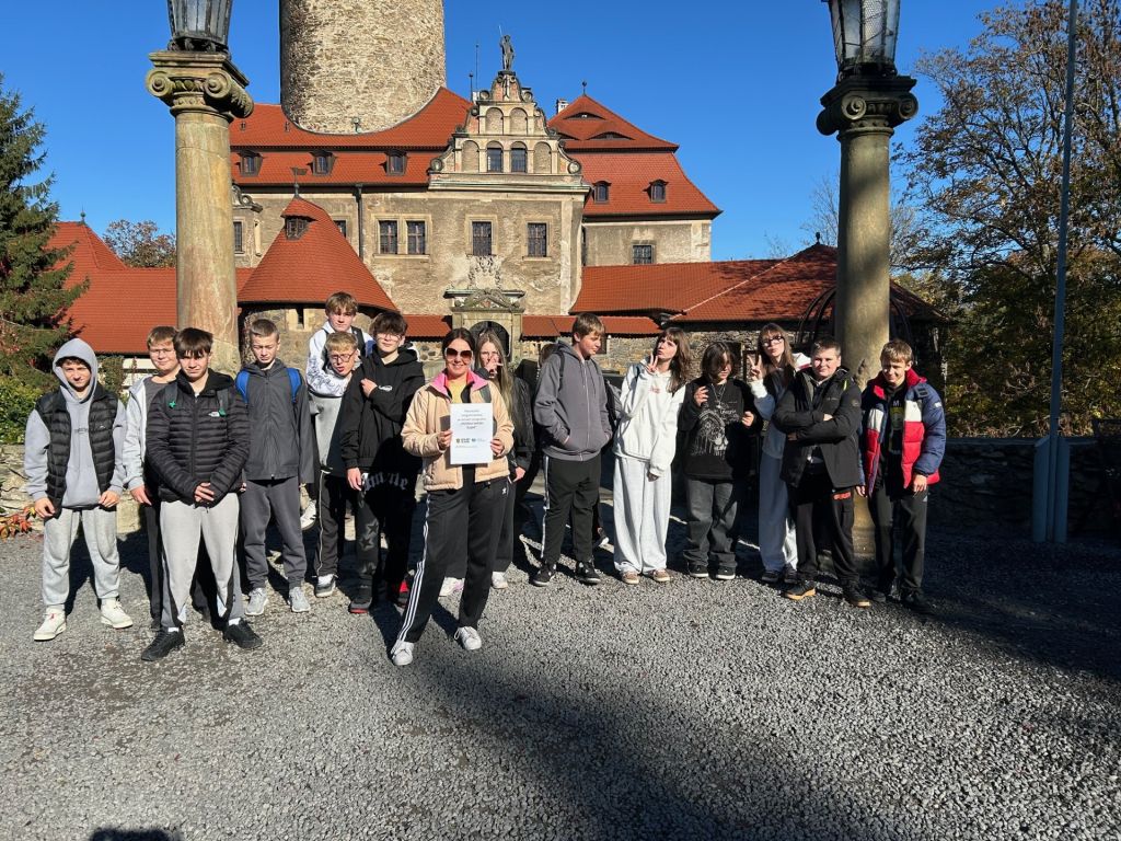 Dnia 20.10.2025 r. kl. 7 c wraz z wychowawcami mieli okazję zwiedzić malowniczą krainę Górnych Łużyc nad Zalewem Leśniańskim na rzece Kwisa. Głównym punktem w programie wycieczki był Zamek Czocha, gdzie uczniowie poznali jego niezwykłą historię o mieszkańcach oraz losach samego zamku i mogli pozwiedzać te owiane tajemnicą, legendarne pomieszczenia. Budowla wpisuje się charakterem w obronny zamek graniczny posadowiony na gnejsowych skałach należących do metamorfiku izerskiego. Kolejnym punktem wycieczki był spacer na Zaporę Leśniańską, którą uroczyście otwarto w lipcu 1905r. W ciągu dwóch lat, czyli w latach 1905- 1907, co ciekawe u podstawy zapory powstała elektrownia wodna, która jest najstarszą w Polsce działającą nadal i posiada wyposażenie zachowane w bardzo dobrym stanie do dziś. Całe przedsięwzięcie zostało zorganizowane w ramach programu „Poznaj Dolny Śląsk”. Zadania dofinansowanego ze środków budżetu Samorządu Województwa Dolnośląskiego”.