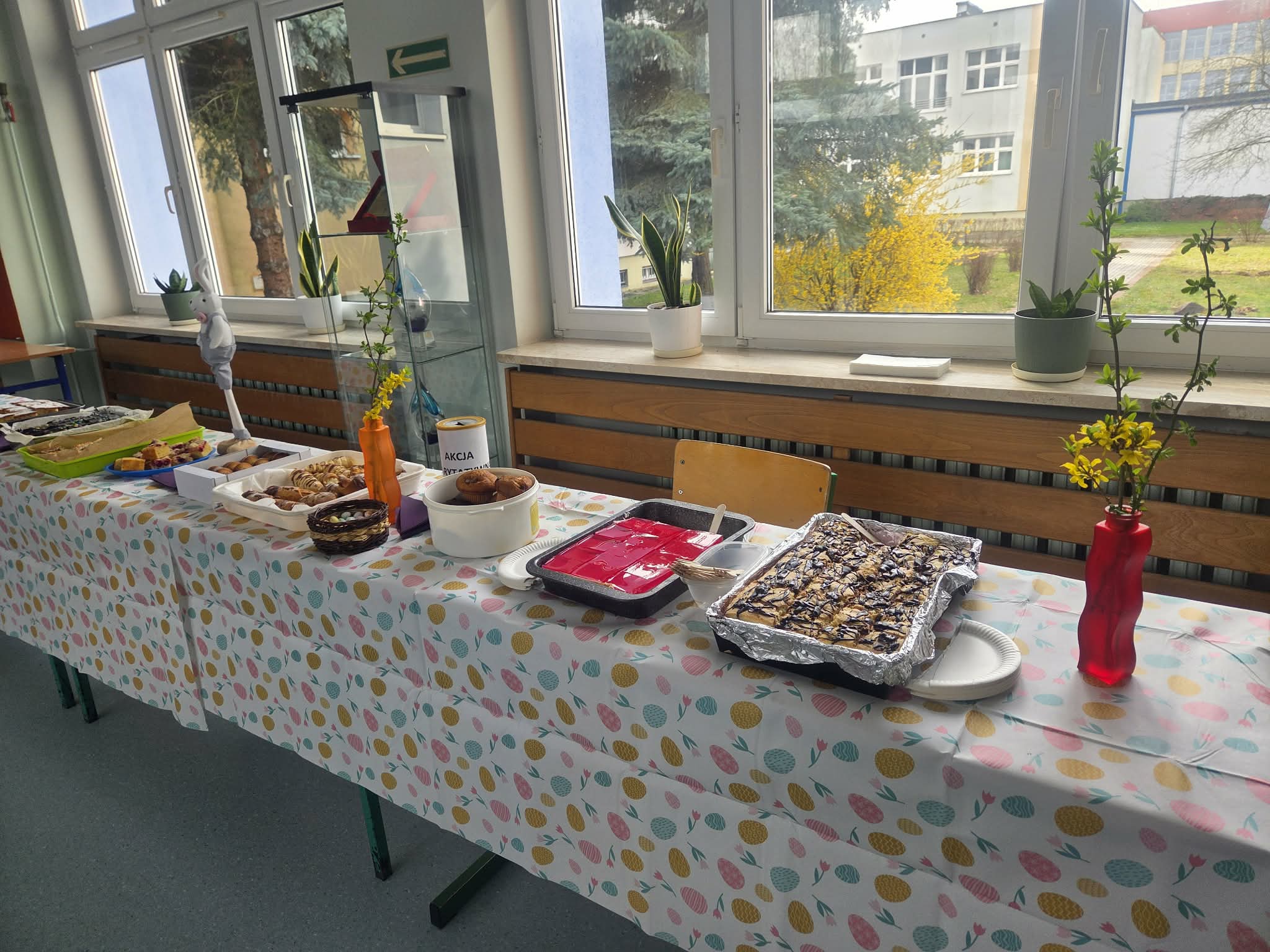 W dniach 24-26 marca 2026 w budynku przy ul. Ociosowej odbył się Kiermasz Wielkanocny „Słodkości od zajączka.” Jego organizatorami byli uczniowie klas 8d, 8e i członkowie koła wolontariatu wraz z opiekunami p. Dorotą Doskocz, p. Joanną Dydak, p. Agnieszką Gadomską i p. Justyną Trybką. Podczas kiermaszu można było kupić pyszne ciasta i ciasteczka a także piękne kartki świąteczne. Kiermasz cieszył się bardzo dużym zainteresowaniem społeczności szkolnej a zebrane pieniążki przeznaczone zostaną na wsparcie organizowanych w naszej szkole akcji charytatywnych. Były to bardzo miłe 3 dni, które pozwoliły wszystkim wprowadzić się w świąteczny klimat a jednocześnie pomóc potrzebującym. Dziękujemy wszystkim za zaangażowanie – pamiętajmy dobro wraca 😊