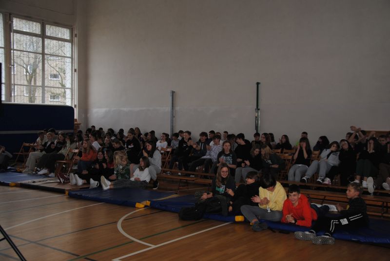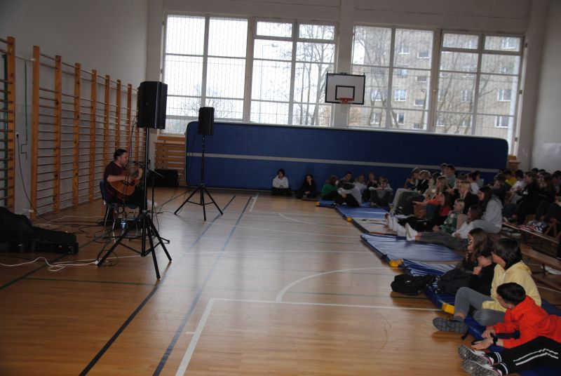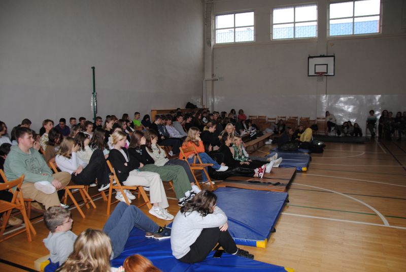 Dnia 22 listopada 2022 r. w naszej szkole po raz pierwszy realizowaliśmy Program profilaktyki uzależnień pod postacią recitalu słowno-muzycznego pt. „Wolności oddać nie umiem” w wykonaniu znanej postaci ze sceny muzycznej - Gabriela Fleszera. Podczas recitalu zostały zaprezentowane treści mające przestrzec młodych ludzi przed wchodzeniem na drogę uzależnień, które przeplecione były znanymi utworami, m.in. „Kroplą deszczu”, „Bilet do nieba”, „Kto panem, kto sługą” z akompaniamentem gitary. Artysta poruszał przykre epizody z własnego życia oraz innych znanych osób, które mają stać się przestrogą dla młodzieży, widzącej swych idoli w najjaśniejszych barwach. Muzyk opowiadał o uzależnieniach najbardziej zagrażających zdrowiu i życiu, które stają się coraz większym problemem społecznym. Nasz gość próbował uświadomić uczniom, że życie jest o wiele ciekawsze bez używek, które dają jedynie zakłamane szczęście na chwilę działania używki, a w konsekwencji niosą cierpienie, czasem nawet na długie lata. Prezentacja została wzbogacona o fakty i opinie naukowców odnośnie palenia i innych uzależnień. Występ zakończył utworem „Kocham wolność”, aby podsumować, jak cenne jest życie naprawdę wolne, zwłaszcza wolne od uzależnień. Program został sfinansowany z Gminnego Programu i Profilaktyki Przeciwdziałania Alkoholizmowi.
