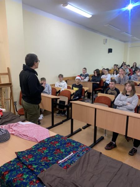 6 grudnia w ramach projektu „Dotykamy ręką świat” gościliśmy misjonarza - Radka Siewniaka ze Stowarzyszenia „Do źródła”, który zabrał uczniów klas VI, VII, VIII w misyjną wirtualną podróż na Bliski Wschód do Iraku – Kurdystanu. Młodzież mogła wiele się dowiedzieć o warunkach życia tamtejszej ludności, a także usłyszeć o życiu swoich rówieśników w obozach dla uchodźców.