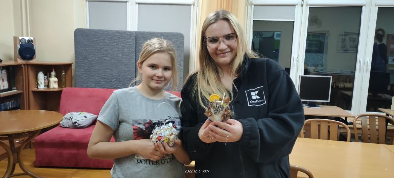 W klubie „Sezam” odbyły się dwudniowe warsztaty artystyczne dla poszczególnych Uczniów klas IV-V i ich Rodziców organizowane przez psychologa szkolnego - p. Sarę Łago. Przy dużym wsparciu pedagoga – p. Justyny Wojcińskiej Uczniowie wraz z Rodzicami wykonywali bombki oraz zapachowe świeczki sojowe, które ozdabiali według własnego pomysłu, a następnie przygotowane ozdoby zabierali do swych domów. W gorączce świątecznych przygotowań często brakuje czasu, ale chwile spędzone z dziećmi są nieocenione.