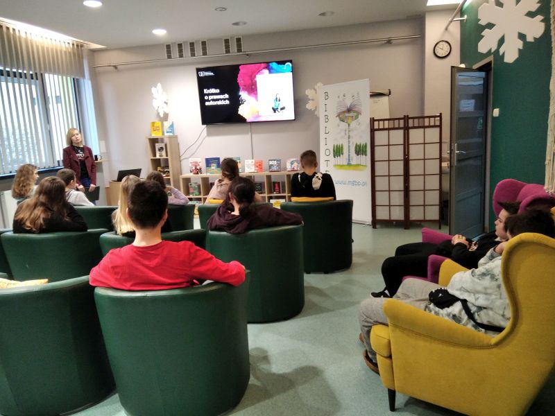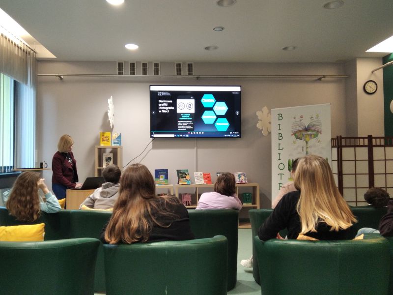 10 stycznia 2023 r. klasa 7b wzięła udział w warsztatach ,,Każdy tworzyć może!...czyli darmowe obrazy, programy graficzne online oraz prawa autorskie", zorganizowanych przez Miejsko-Gminną Bibliotekę Publiczną w Polkowicach. Zajęcia rozpoczęły się krótkim wykładem na temat praw autorskich. Dzięki niemu dowiedzieliśmy się, kogo można nazwać twórcą, w jaki sposób możemy chronić swoje utwory i jak korzystać z prac innych, by nie naruszać ich praw. Poznaliśmy też sposoby na wyszukiwanie zdjęć, które zgodnie z prawem można umieścić w swoich pracach. Później mieliśmy okazję wykorzystać zdobytą wiedzę w praktyce, tworząc plakat w darmowym programie graficznym. Na koniec poznaliśmy bogate zasoby biblioteki. W polkowickiej bibliotece można wypożyczyć nie tylko książki, lecz również płyty ulubionych twórców, filmy DVD, gry planszowe i audiobooki. Warto się im przyjrzeć, odwiedzając bibliotekę.