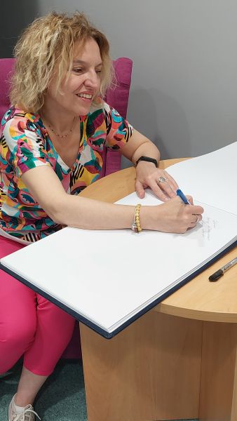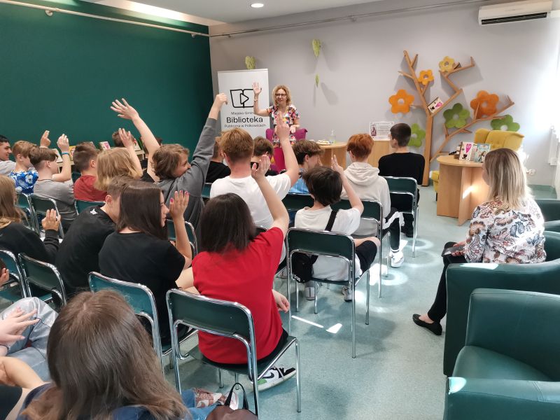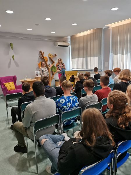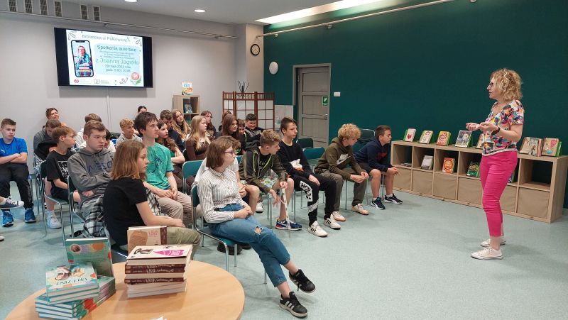 W poniedziałek 29 czerwca 2023r. uczniowie klas 7 i 8 uczestniczyli w spotkaniu autorskim z pisarką Joanną Jagiełło, zorganizowanym przez Miejsko – Gminną Bibliotekę Publiczną w Polkowicach. Z uczniami klas 7 autorka poruszyła temat : „WOKÓŁ MOJEGO CIAŁA ”, który dotyczył kompleksów z powodu wyglądu, zaburzeń odżywiania i uniformizacji społeczeństwa: dlaczego tak trudno być innym? Najstarsi uczniowie natomiast mieli okazję porozmawiania na temat swoich marzeń. Pisarka przekonywała młodzież , że każdy ma do czegoś talent. Nie ma człowieka, który nie nadaje się do niczego i nie może odnieść sukcesu. Opowiadała również o swoim wielkim marzeniu, jakim było pisanie. Z jaką niechęcią otoczenia spotykała się podczas dążenia do realizacji swoich celów i z jakim uporem ten cel realizowała.