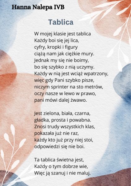 Hanna Nalepa IVb – wiersz Tablica