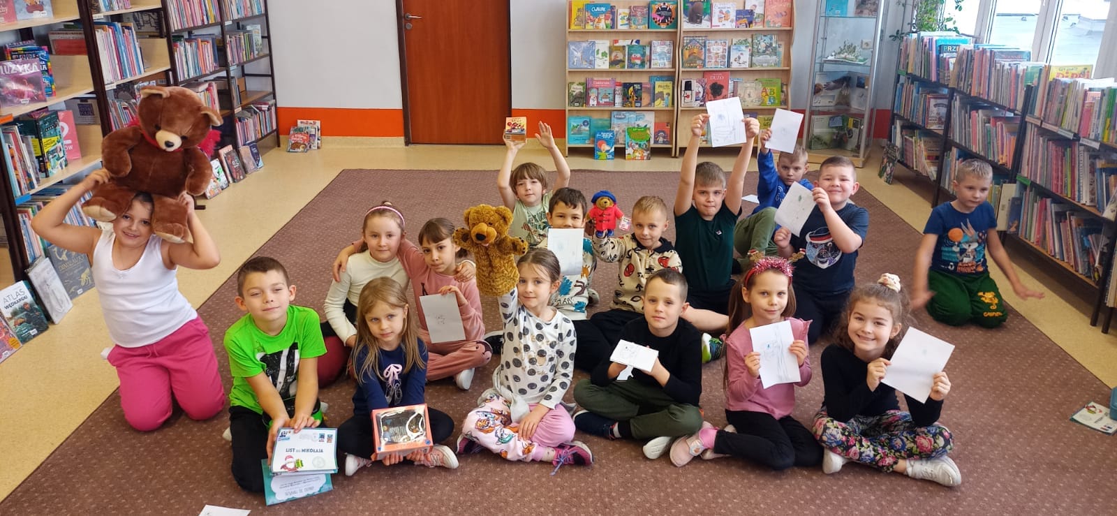 W ostatnim tygodniu listopada, z okazji Światowego Dnia Pluszowego Misia, w naszej szkolnej bibliotece królowały... pluszowe misie. Uczniowie klas 0-3 wzięli udział w zmisiowanych zajęciach bibliotecznych. Dzieci miały możliwość obejrzenia wystawki misiowych książek, których, jak się okazuje, jest w bibliotece bardzo dużo!... Dzięki pięknej prezentacji miały też okazję poznać prawdziwe niedźwiedzie i bajkowe misie. Każde dziecko mogło ponadto spróbować swoich sił podczas rysowania misia koali krok po kroku, według instrukcji. Dzieci świetnie poradziły sobie również w układaniu misiowych haseł z rozsypanek wyrazowych, a także miały okazję pobrykać podczas opowiastki ruchowej "Leśne misie".