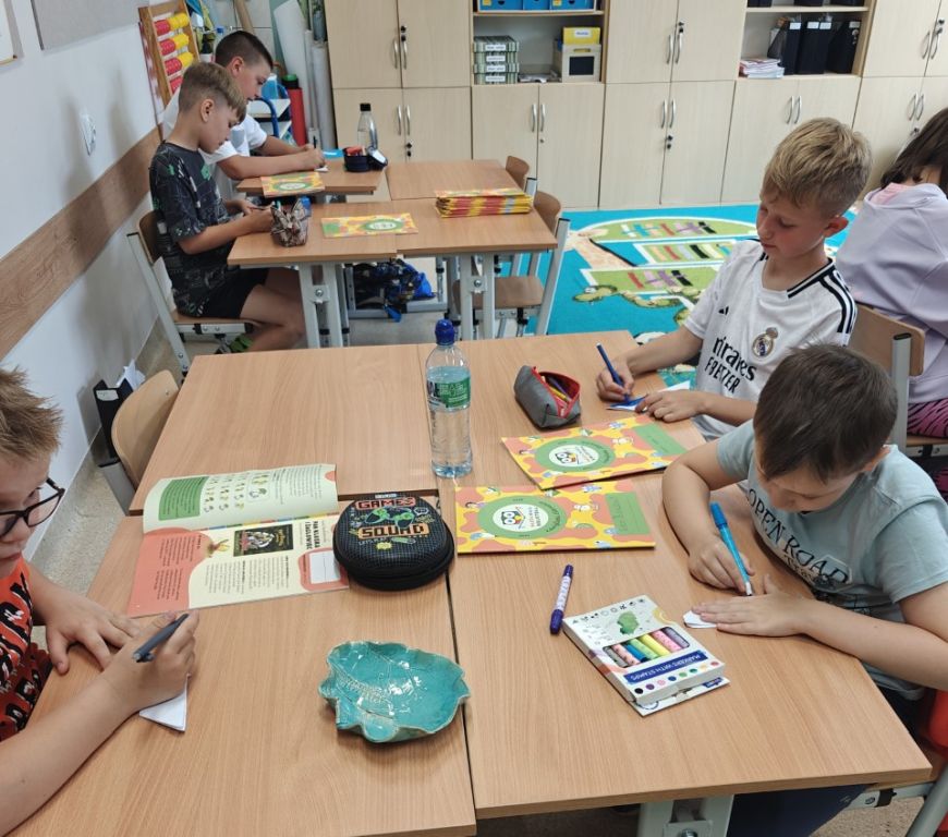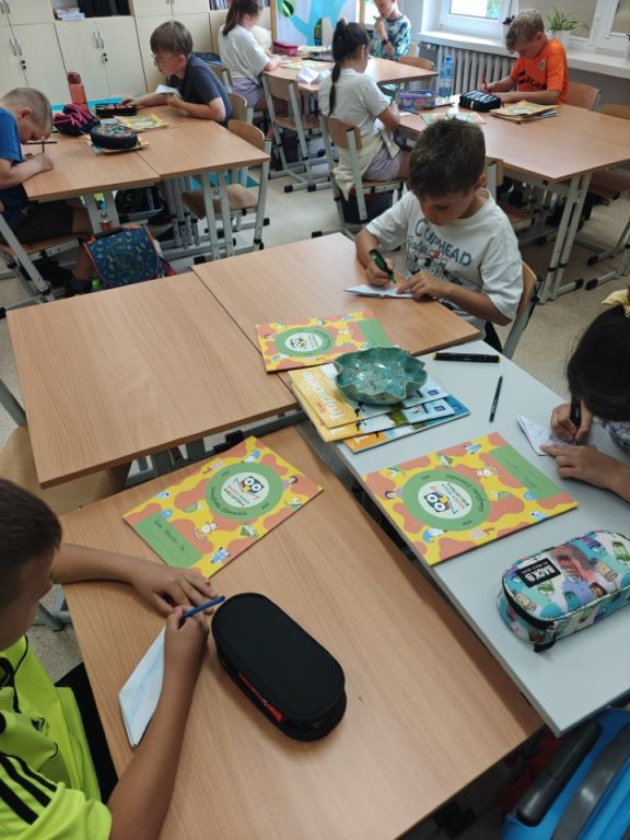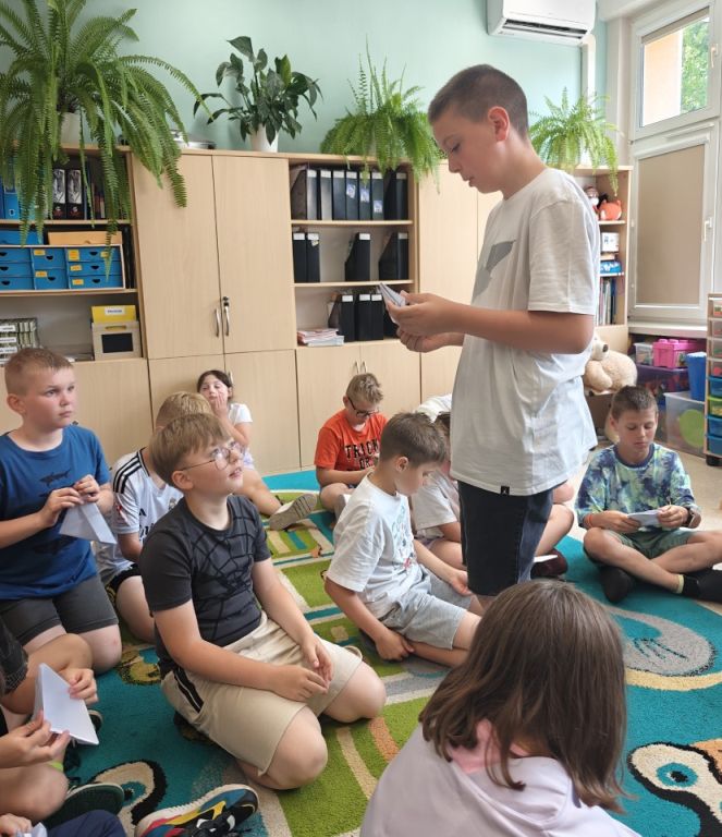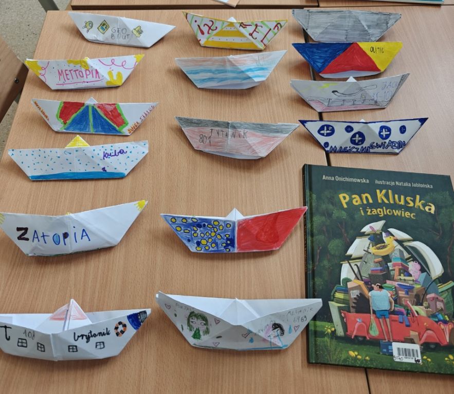 W czerwcu, w ramach projektu „Nasza Mała Biblioteka” klasa 3a odbyła literacką podróż…do Polski. Uczniowie wysłuchali opowiadania Anny Onichimowskiej pt. „Pan Kluska i żaglowiec” oraz poznali inne książki tej autorki znajdujące się w bibliotece szkolnej. Tematem naszej rozmowy było hasło: „Czy mniej znaczy lepiej?”. Na zakończenie zajęć kolega Staś krok po kroku pokazywał uczniom, jak ze zwykłej kartki papieru można stworzyć papierową łódkę. To była naprawdę super zabawa!