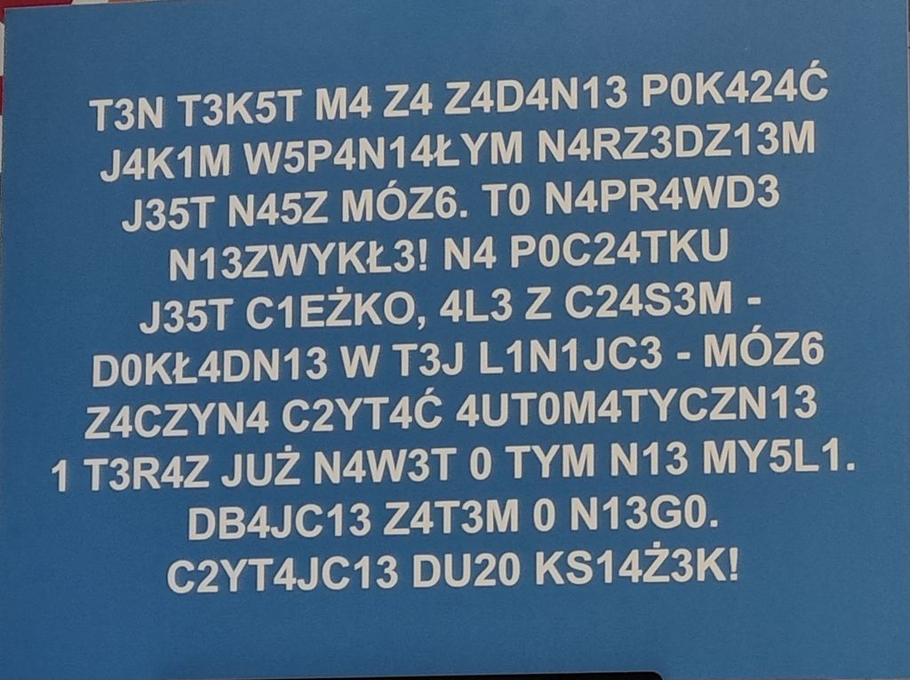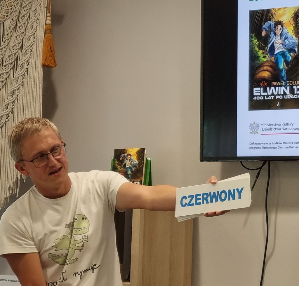 23 września, w Bibliotece Miejskiej, odbyło się spotkanie z pisarzem - Pawłem Gołuchem. Z wykształcenia programista, z zamiłowania pisarz, a zawodowo ratuje stare meble w odziedziczonym zakładzie tapicerskim – Paweł Gołuch - spotkał się z uczniami klasy 6b i opowiedział o swojej pierwszej powieści science fiction „Elwin 13.400 lat po Upadku”. Akcja toczy się w dwóch światach... W jednym z nich, na wrocławskim osiedlu uprowadzona zostaje 14-letnia Julia i ślad po niej ginie. Szkolny kolega Daniel mógłby pomóc w jej odnalezieniu, gdyby tylko uważniej obserwował, co dzieje się na ulicy, a nie wpatrywał się w telefon. W drugim świecie Elwin, lat 13, zostaje zahibernowany i wysłany w przestrzeń, aby przeczekać deszcz meteorytów. Pewnego dnia kapsuła ląduje, Elwin budzi się i widzi, że życie się toczy… Brakuje wody, ludzie chowają się w bastionach, po ziemi chodzą wielkie mrówki. Można odbudować ziemię, bo gdzieś na świecie ukryty jest bank nasion i komórek, i chłopak zna to miejsce, ale jego pamięć jest zablokowana. Co łączy Daniela i Elwina? Czy wygrają wyścig z czasem? Czy przypomną sobie istotne dla życia fakty? Paweł Gołuch w obrazowy sposób pokazał, jak łatwo oszukać nasz mózg. Nie zawsze to, co widzimy, jest prawdą. Wskazał też, jak skupić się na tym, co najważniejsze, jak dostrzegać istotne szczegóły. Na koniec autor rozdał zakładki ze swoim autografem. Obejrzyjcie załączone zdjęcia i sprawdźcie, co potrafi wasz mózg...