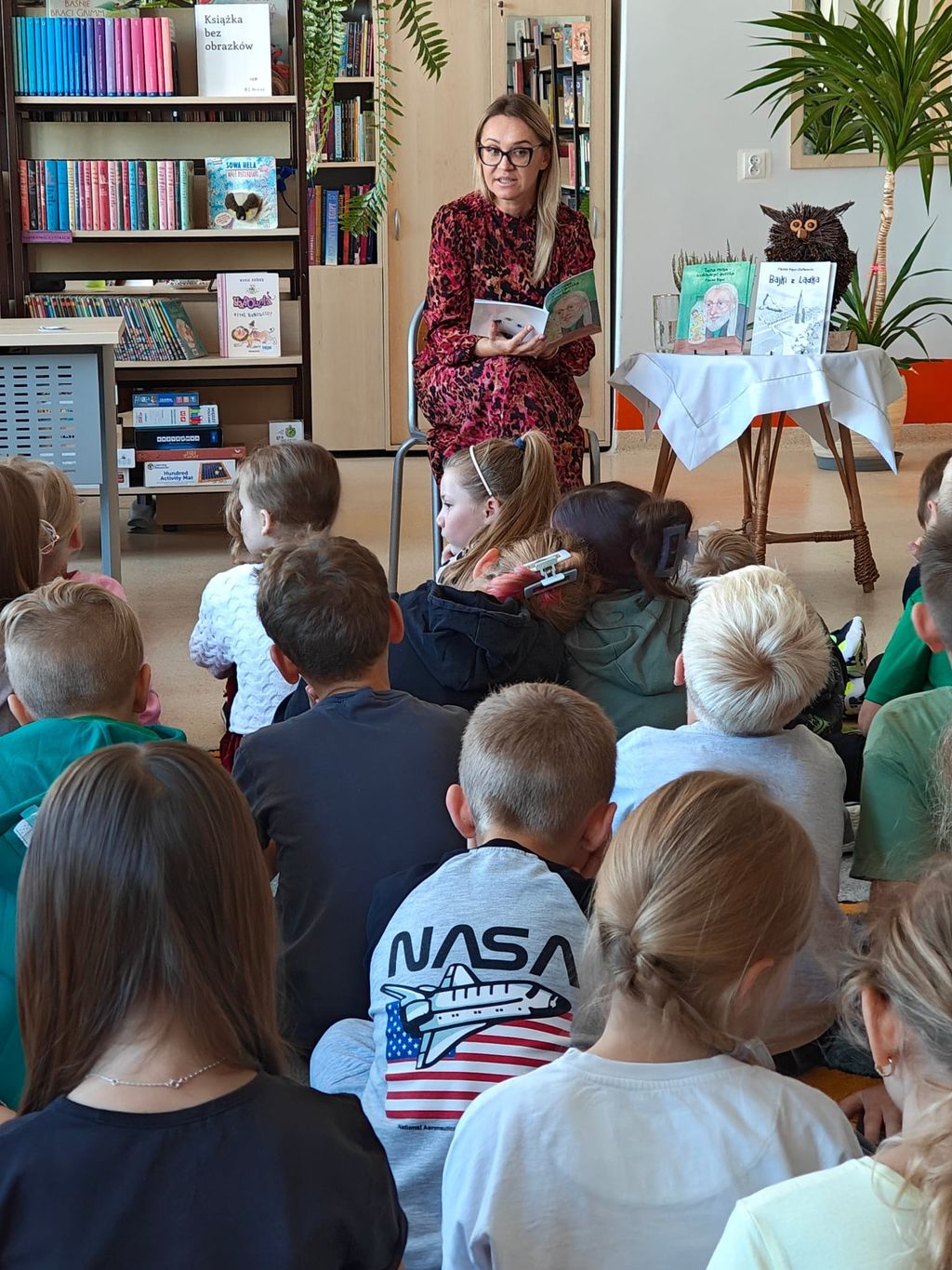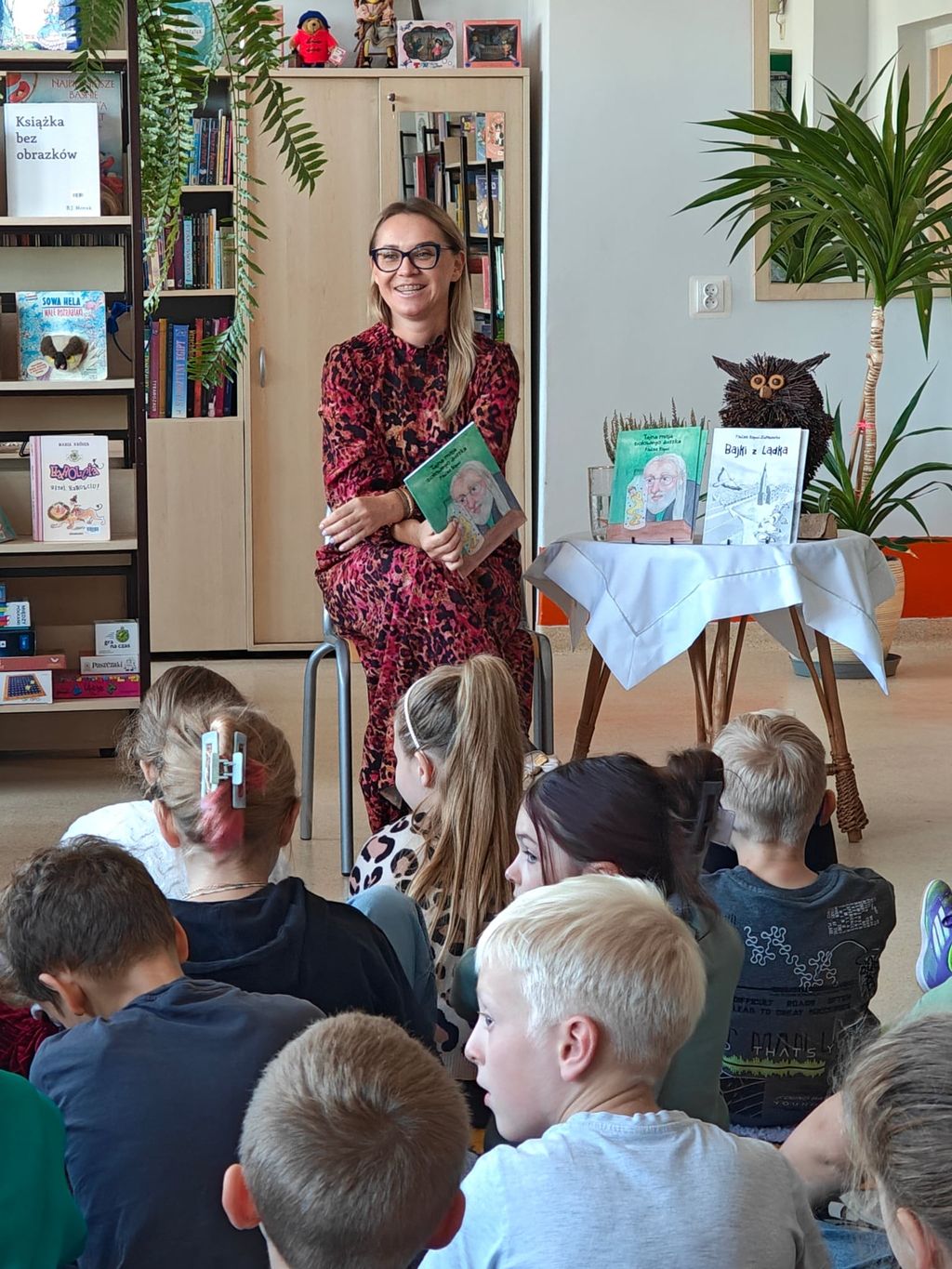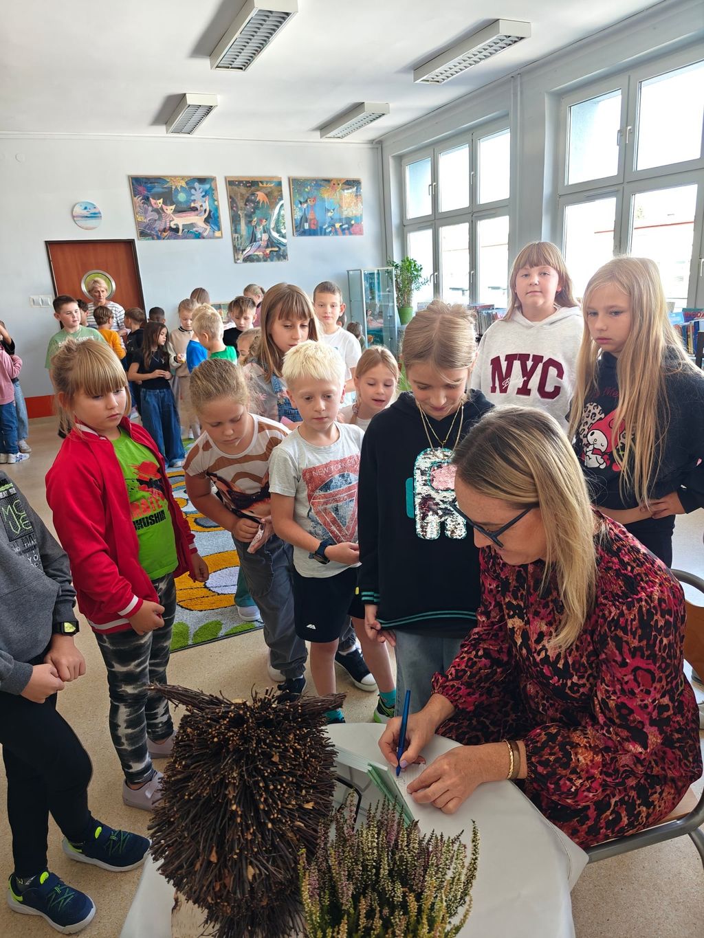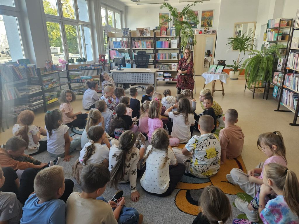 23 września 2025 roku, w bibliotece szkolnej, uczniowie grupy przedszkolnej 0T oraz klas 1a, 2a i 3b mieli okazję spotkać się z pisarką Pauliną Kopeć. Autorka opowiedziała o swojej pracy pisarskiej, o tym, jak powstają książki i skąd czerpie na nie pomysły. Dzieci wysłuchały czytanych przez Panią Paulinę fragmentów książki pt. „Tajna misja ziołowego duszka”. Były też rozmowy o supermocach, o tym, że każdy z nas ma w sobie jakąś wyjątkową moc, którą może być odwaga, wyobraźnia, dobroć albo życzliwość i chęć pomagania innym. Na zakończenie spotkania nie zabrakło autografów oraz wspólnych zdjęć.