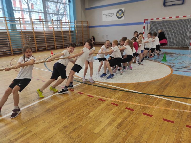 Nasi wuefiści - Pani Marzenka i Pan Marcin - przygotowali dla wszystkich uczniów super sportową przygodę pt. "Pierwszy Dzień Wiosny na wesoło".