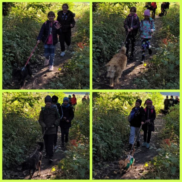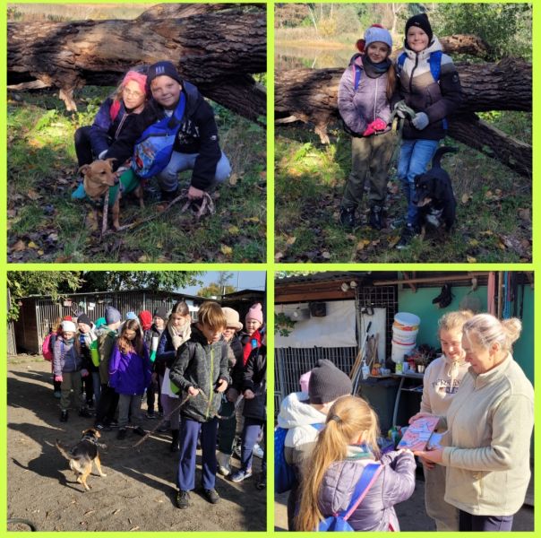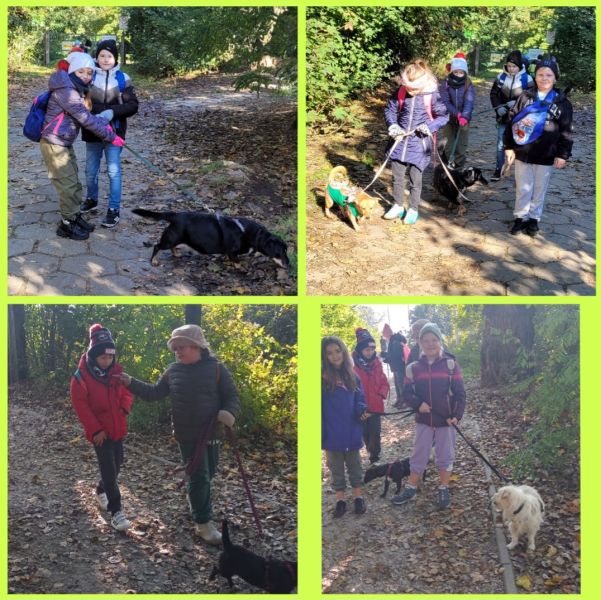 Przygoda rozpoczęła się od zwiedzenia schroniska i obejrzenia zwierzątek, które witały dzieci wesoło, szczekając i merdając ogonkami. Potem każda para otrzymała pieska i poszła z nim na spacer. Uczniowie spacerowali, biegali i bawili się ze swoimi milusińskimi... To były niezapomniane chwile, pełne spontanicznej radości i błysku w oczach! Każdy dosłownie "zakochał się" w swoim pupilu, dlatego tak żal było się z nimi rozstać!...