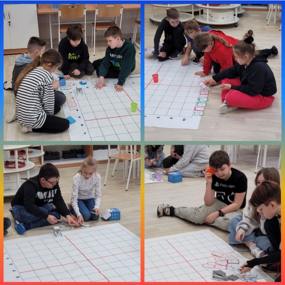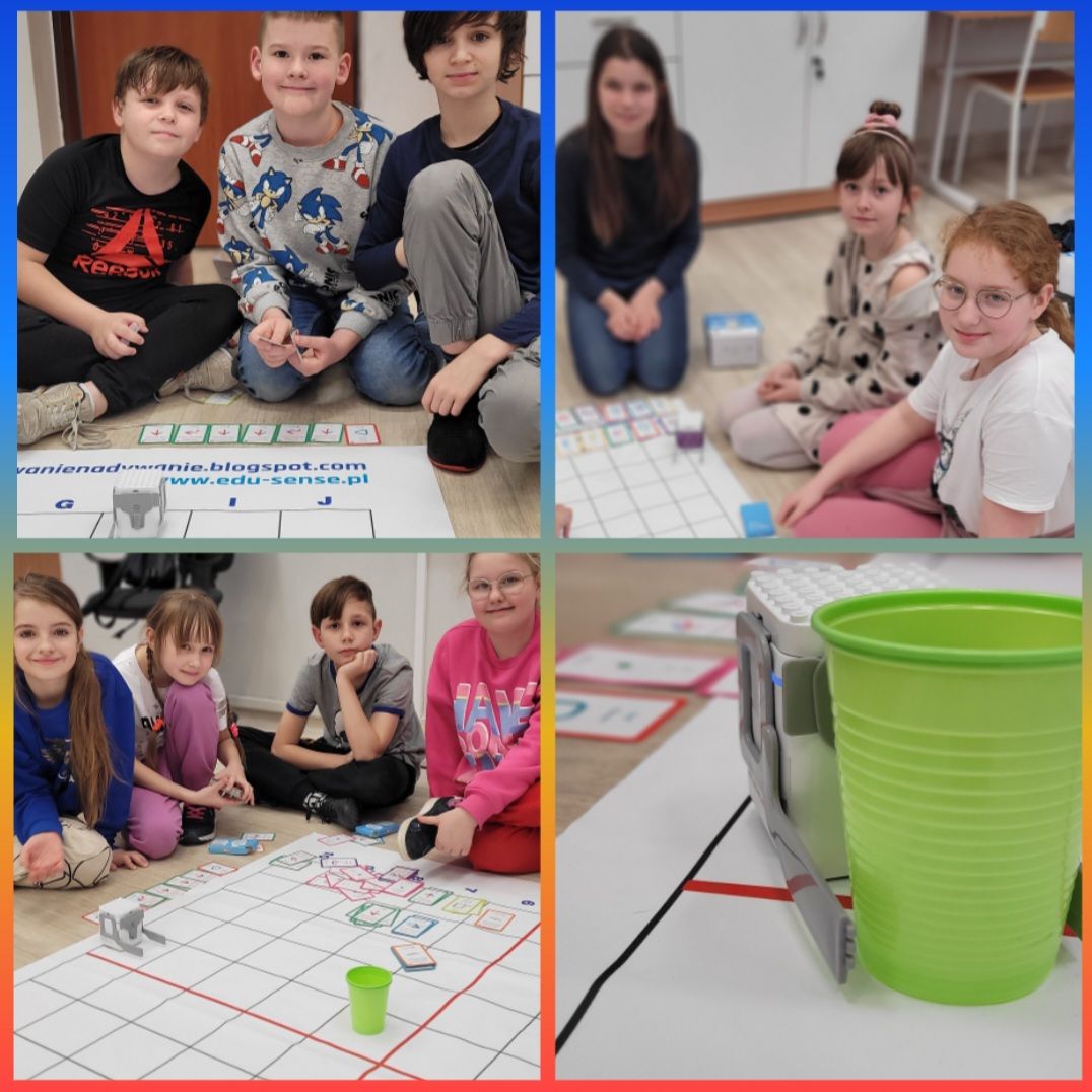 Nauka przez zabawę, na dodatek z wykorzystaniem robotów, to świetny sposób na aktywizowanie uczniów i wprowadzenie ich w świat kodowania i programowania. Tym razem przedstawiamy działania z Genibotami. Są to małe roboty, programowane przy użyciu specjalnych kart. Praca z nimi uczy wspomnianych wyżej podstaw programowania i kodowania oraz doskonali myślenie przyczynowo - skutkowe. Jest też świetnym sposobem na integrację zespołów i doskonalenie współpracy. Dzieci poznały zasady sterowania robotami: za pomocą kart, wydawane są polecenia, które Geniboty wykonują: jeżdżą, skręcają, zawracają, kręcą się i grają melodyjki. Niektórzy uczniowie potrafią nawet zaprogramować robota tak, aby wyruszył, dotarł do wskazanego przedmiotu np. kubeczka i wrócił z nim na miejsce startu. Jest to świetny sposób na zdobywanie nowych umiejętności poprzez zabawę i doświadczanie.