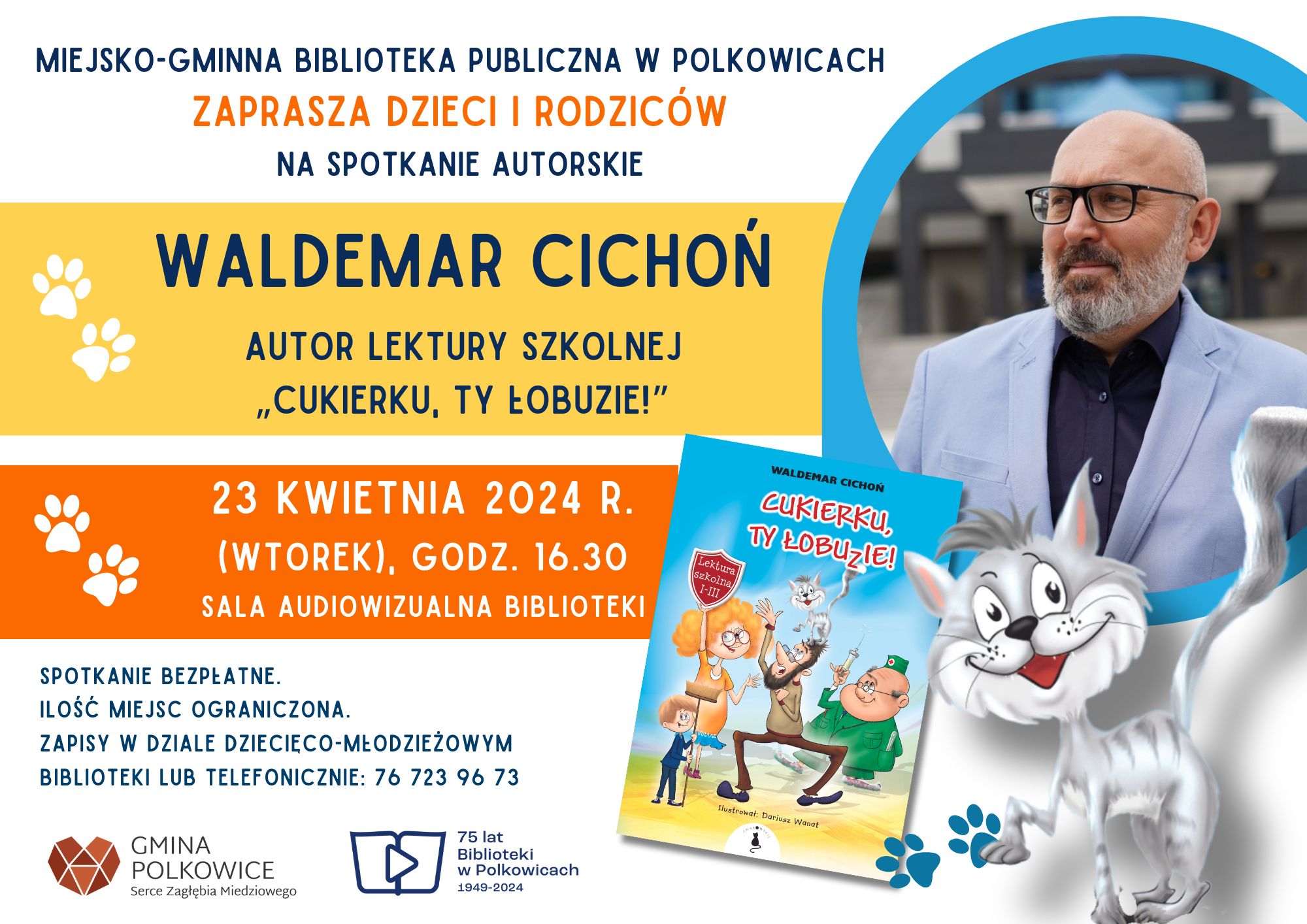 Jedną z nagród w konkursie jest zaproszenie klasy naszej laureatki na spotkanie autorskie z Panem Waldemarem Cichoniem, autorem wielu książek dla dzieci, w tym przezabawnych historii o kocie Cukierku. Klasa 3c już nie może się doczekać!