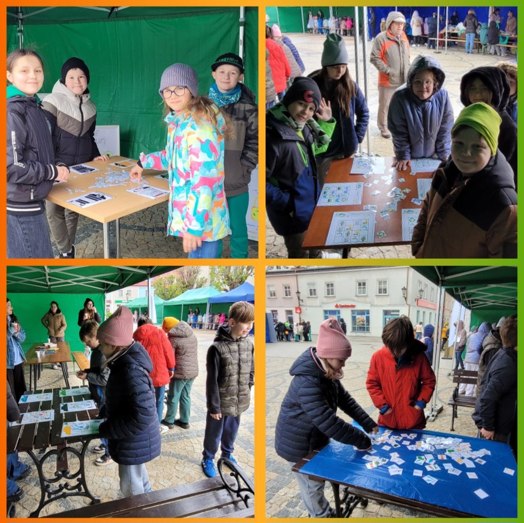25.04.2024r. na polkowickim Rynku odbył się 15 Polkowicki Festiwal Ziemi. W tym roku edukacja ekologiczna zaplanowana była pod hasłem „Czyste powietrze, lepszy klimat”. Uczniowie klasy 3c reprezentowali naszą szkołę, aktywnie uczestnicząc w wielu przygotowanych przedsięwzięciach. Dzieci wzięły udział m. in. w wyjątkowych „Warsztatach mody ekologicznej”, podczas których, z wykorzystaniem surowców wtórnych stworzyły unikalną, upcyklingową kreację dla kolegi z klasy. Doskonałą okazją do podniesienia świadomości ekologicznej był również udział w warsztatach pt. „Fotosynteza w akcji”, przeprowadzonych w „Krainie eksperymentów”. Dzieci wykonały doświadczenia poświęcone roślinom i procesom w nich zachodzącym. Dowiedziały się, czym jest proces fotosyntezy, a także utrwaliły wiedzę na temat zjawiska kapilarności. Ogromną radość sprawiło trzecioklasistom rzucanie szyszkami do celu, segregowanie odpadów, oglądanie książek o treści przyrodniczo – ekologicznej, a także tworzenie stroików z szyszek, gałązek, nasion, kory, drewna i liści. Kilkoro dzieci udzieliło nawet wywiadu do Telewizji Regionalnej. Na koniec każdy uczeń otrzymał sadzonkę begonii, którą obiecał zasadzić i pielęgnować.