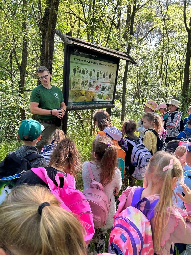 17 maja uczniowie klasy 1b uczestniczyli w warsztatach przyrodniczych, zorganizowanych w ramach projektu ,,Dbamy o bioróżnorodność wokół nas”, które miały miejsce na terenie Nadleśnictwa Przemków. W ramach warsztatów odbyło się spotkanie z leśniczym, który zabrał uczniów na wędrówkę edukacyjną ścieżką przyrodniczą po pięknych lasach przemkowskich. Pierwszoklasiści poznali pracę leśniczego, pod którego okiem poznawali las oraz gatunki roślin i zwierząt. Obserwowali również przez lupy życie owadów i budowę roślin. Po leśnym spacerze uczniowie wzięli udział w drugiej części warsztatów, podczas których rozwiązywali przeróżne przyrodnicze łamigłówki. Wycieczka bardzo podobała się wszystkim. Pierwszoklasiści wrócili pełni wrażeń i nowych wiadomości.