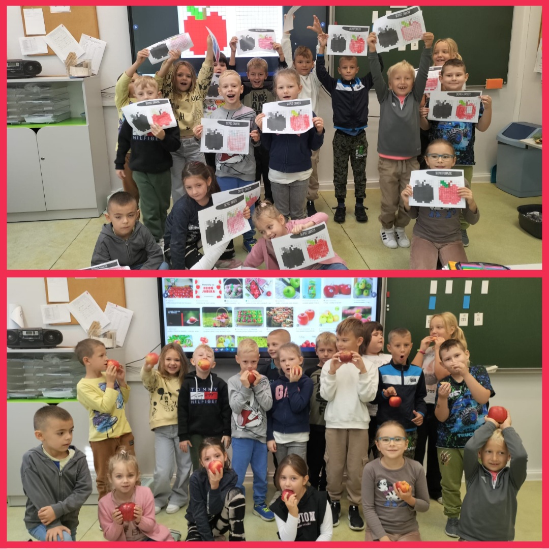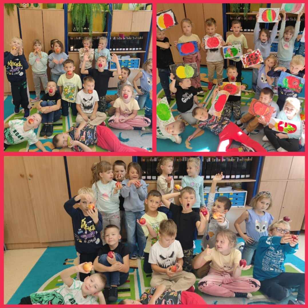 27 i 30.09. klasy pierwsze obchodziły „Światowy Dzień Jabłka”. Była to akcja prozdrowotna, której główny cel to promowanie właściwości odżywczych jabłek i zachęcenie do codziennego spożywania tych owoców. Jabłka dominowały w zabawach ruchowych, muzycznych i plastycznych. Była również jabłkowa matematyka, dzięki której dzieci poznały pojęcia całości, połowy i ćwiartki oraz lekcja przyrody, podczas której uczniowie poznali budowę jabłka i fazy jego wzrostu. Ponadto dzieci próbowały jabłek, których w tych dniach były w klasach pełne kosze. Po tej dawce witamin, uśmiechu i zabawy dzieci z pewnością będą piękne, uśmiechnięte i zdrowe.
