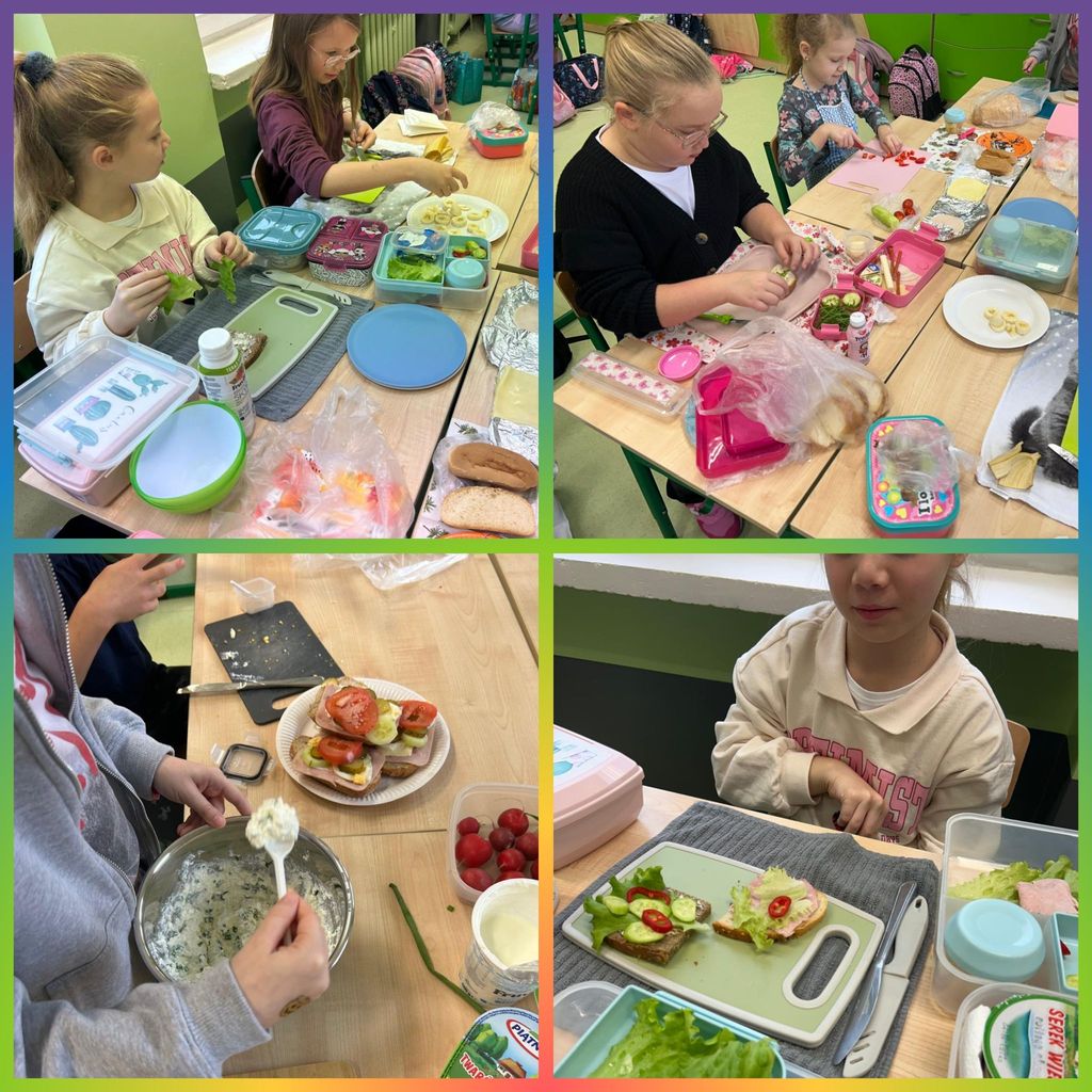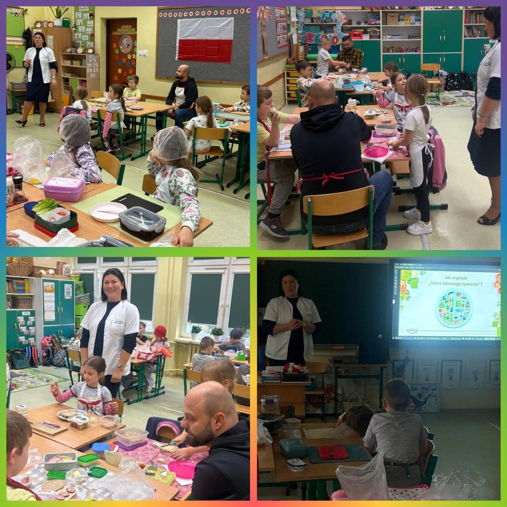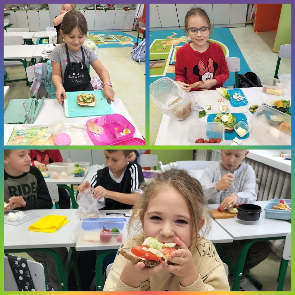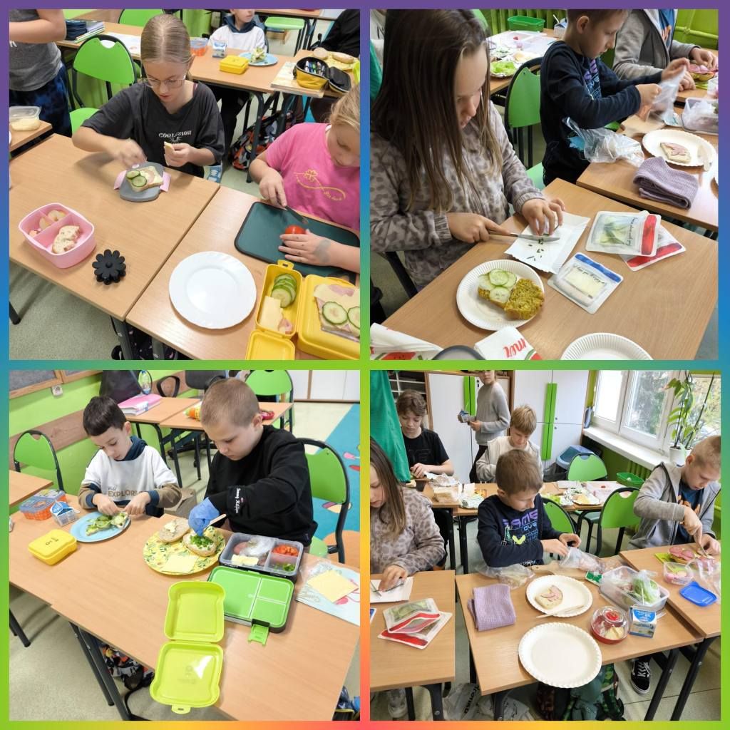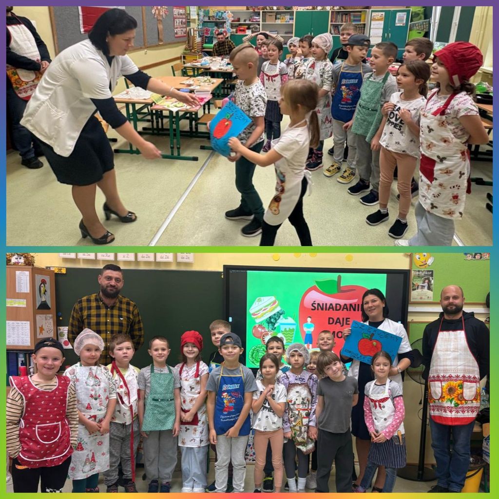 W tym roku nasza szkoła po raz kolejny przyłączyła się do programu edukacyjnego „Śniadanie Daje Moc”. Główne cele tej akcji to promowanie zasad zdrowego odżywiania oraz zwiększanie świadomości uczniów na temat roli śniadania. 7 listopada wszyscy uczniowie klas 1-3 przygotowali zdrowe śniadanie. Były kanapki, sałatki, szaszłyki. Tego dnia przeprowadzono również pogadanki na temat roli śniadania, jako najważniejszego posiłku w ciągu dnia. Klasy pierwsze odwiedziła w tym celu Pani dietetyk, która opowiedziała o tym, że dobrze zbilansowany posiłek daje dzieciom siłę i energię do nauki i zabawy oraz przyczynia się do lepszej koncentracji na wykonywanych zadaniach. Wspólne przygotowywanie, a później spożywanie śniadania sprawiło dzieciom wiele przyjemności i radości.