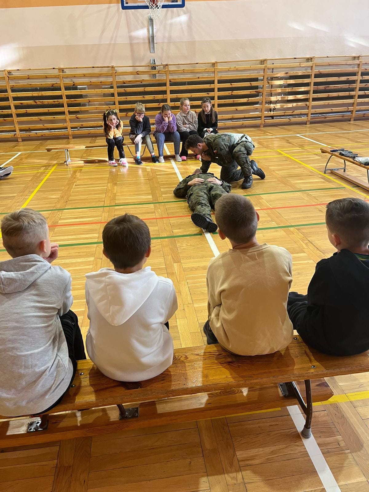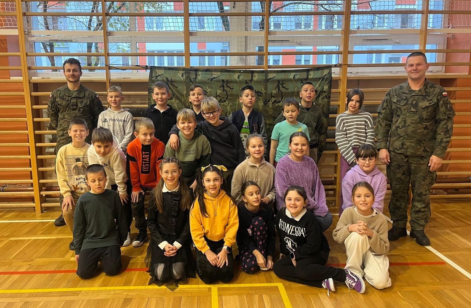W bieżącym roku szkolnym uczniowie klasy 3a uczestniczą w II edycji programu edukacyjno - obronnego, przygotowanego i realizowanego przez MEN i MON „Edukacja z wojskiem”. W ramach programu, w dniu 21 listopada, podczas szkolenia, przeprowadzonego przez żołnierzy z jednostki wojskowej w Głogowie, uczniowie zapoznali się m.in. z zasadami alarmowania, sposobami szukania i wzywania pomocy, podstawami ewakuacji i schronienia oraz udzielania pierwszej pomocy. Poznali również różne przedmioty, które mogą pomóc w przetrwaniu w sytuacjach kryzysowych. Największą radość sprawiło dzieciom stworzenie namiotu z peleryny i sznurka. To było bardzo ciekawe spotkanie, łączące teorię z praktyką, dające uczniom moc nowej wiedzy i umiejętności.