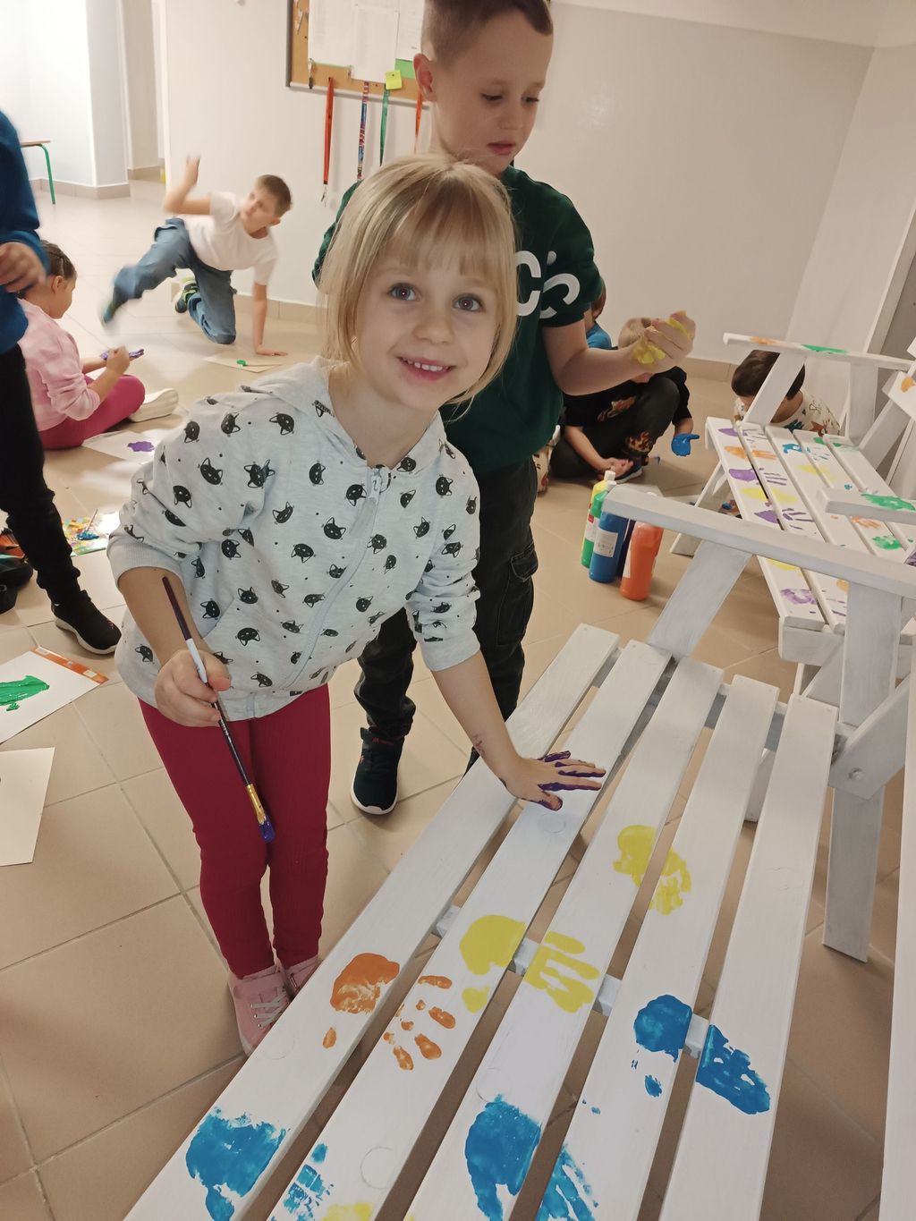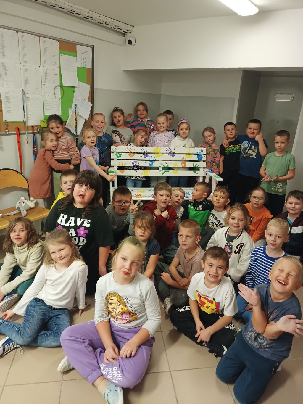 W naszej szkole, w budynku przy ul. Kominka, w ramach miesiąca życzliwości stanęły dwie "ławeczki koleżeńskie", które zostały ozdobione kolorowymi łapkami przez uczniów klas pierwszych. "Ławeczki koleżeńskie" mają uczyć empatii i wrażliwości. Mają służyć dzieciom, które czują się samotne lub nie mają pomysłu na zabawę. Siadając na ławeczce uczeń daje informację swoim kolegom, aby włączyli go do zabawy, albo usiedli obok niego i dotrzymali mu towarzystwa.