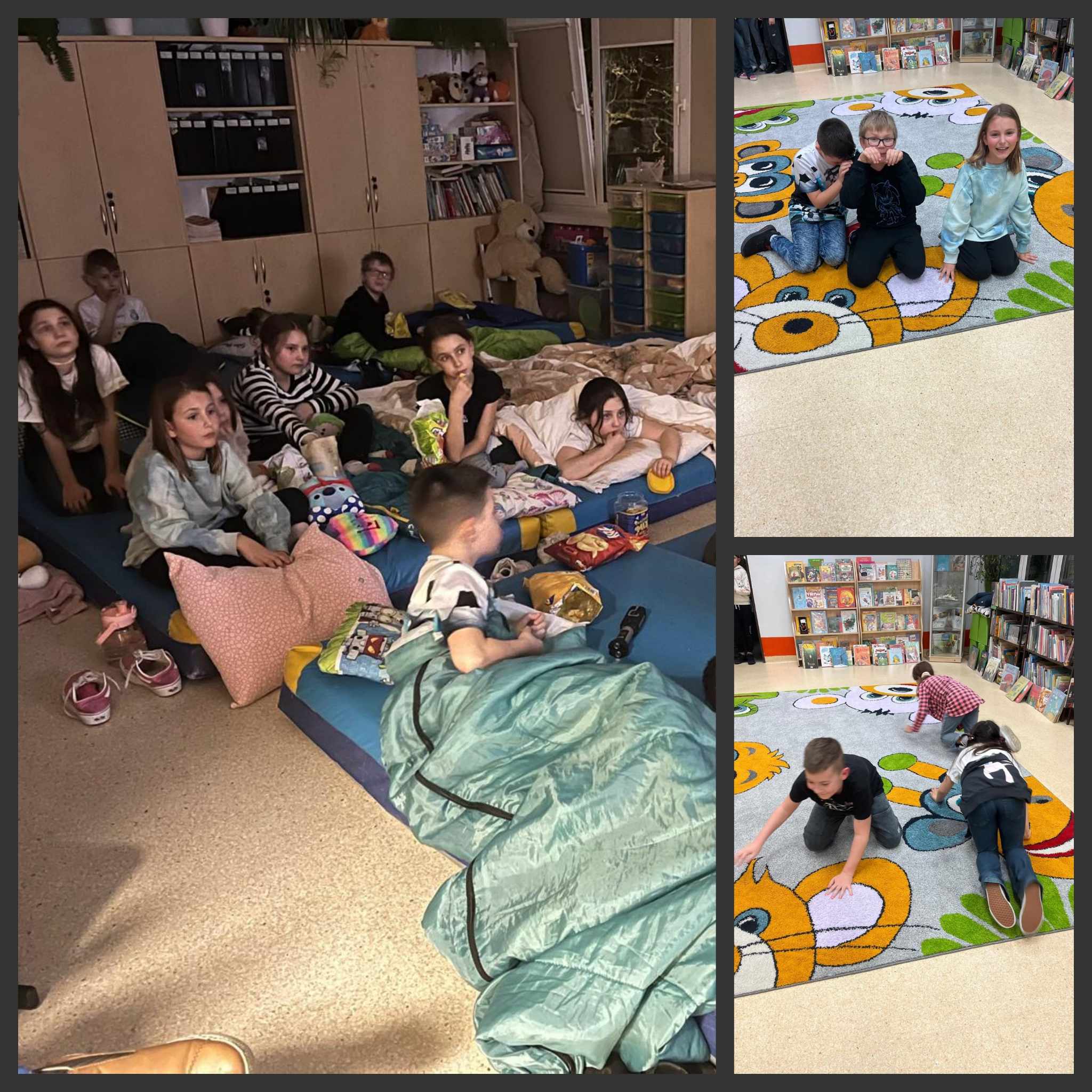 28 marca, z piątku na sobotę, uczniowie klasy 3a po raz kolejny nocowali w szkole. To był czas pełen wspaniałych wrażeń! Na początku dzieci uczestniczyły w klasowym seansie filmowym. Potem zjadły pyszną pizzę. A po kolacji odbyła się szalona gra terenowa, pełna zaskakujących, zabawnych zadań. Aż nie chciało się spać! Noc minęła błyskawicznie, a na drugi dzień uczniowie żegnali się z opiekunami słowami: "Było super! Chcemy jeszcze! Chcemy więcej!"