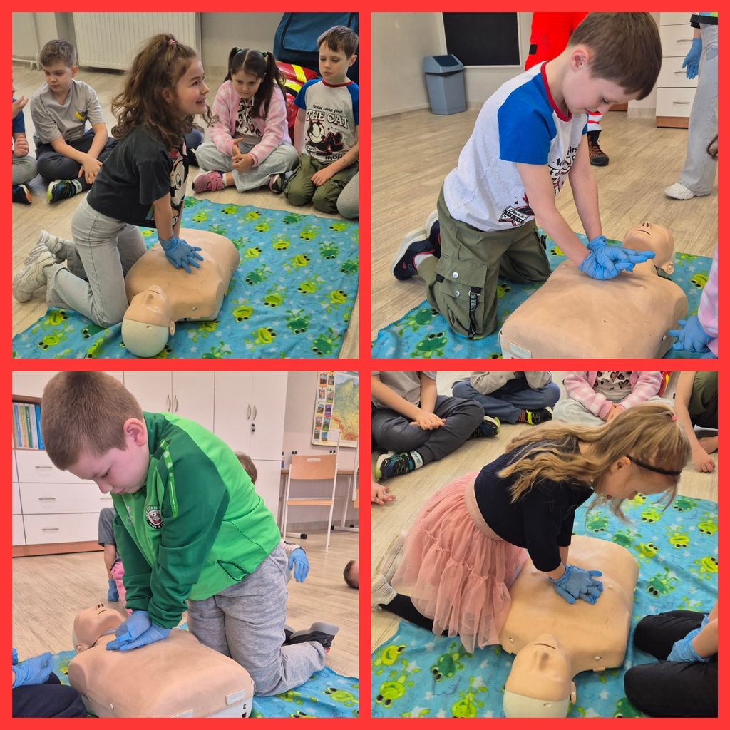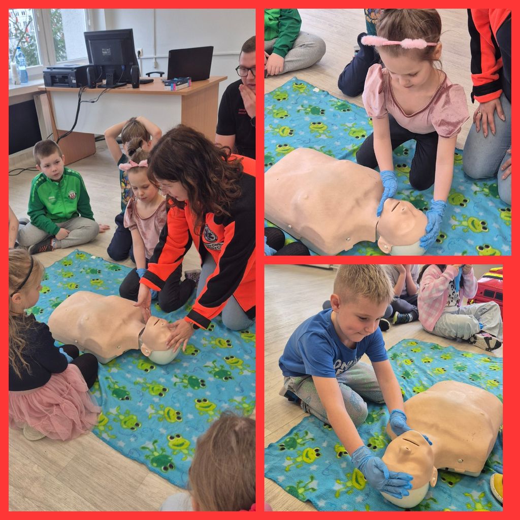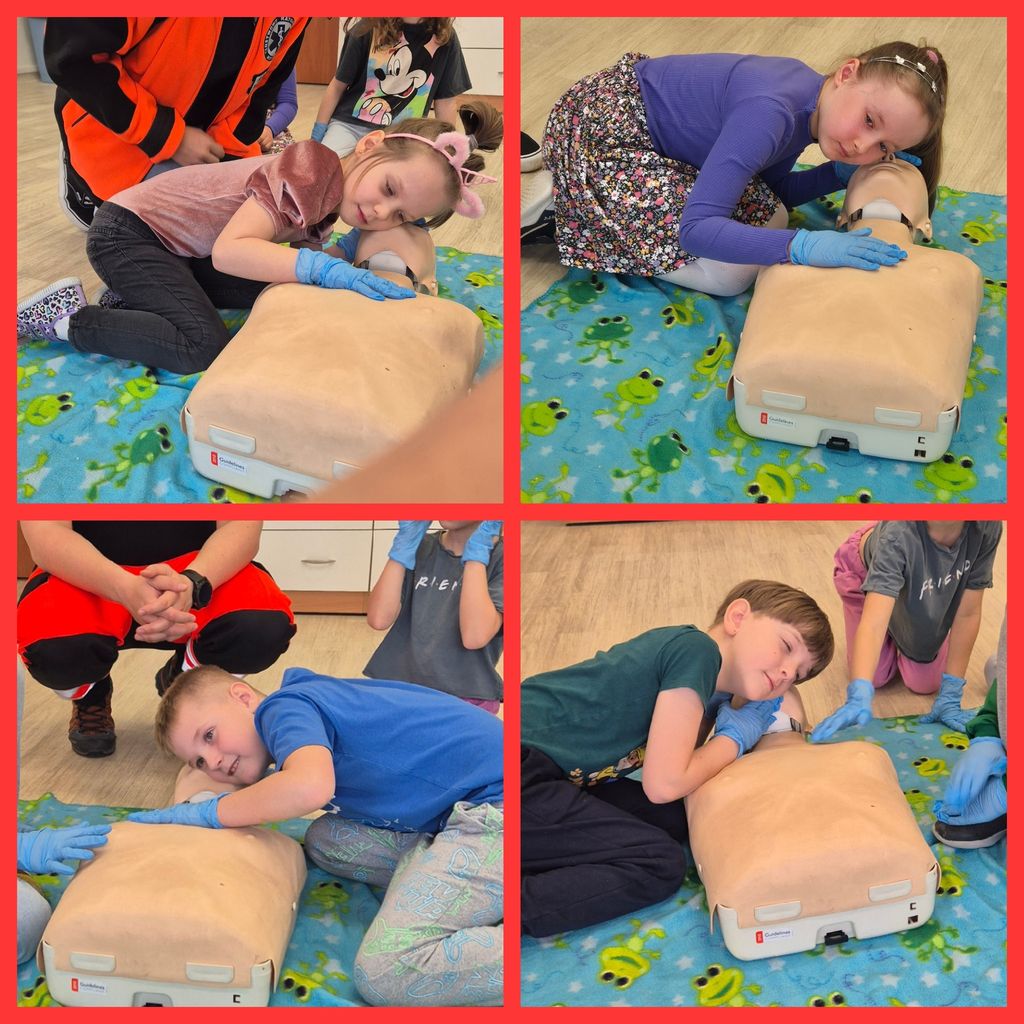 31 marca uczniowie klasy 1b gościli na lekcjach Państwa Klaudię i Daniela Pawlik - ratowników medycznych z Polkowickiego Pogotowia Ratunkowego i SOR-u Głogowskiego Szpitala Powiatowego. Ratownicy przeprowadzili dla uczniów zajęcia z udzielania pierwszej pomocy przedmedycznej. Dzieci poznały Algorytm Pierwszej Pomocy oraz Łańcuch Przeżycia, a także przypomniały sobie oraz utrwaliły numery alarmowe 112 i 999. Na fantomie trenowały kolejność działań w przypadku konieczności udzielenia pierwszej pomocy oraz resuscytację, czyli uciski klatki piersiowej. Poznały także zastosowanie defibrylatora AED. Duże wrażenie zrobiła na dzieciach ogromna apteczka, czyli plecak ratunkowy i wszystkie znajdujące się w nim leki i sprzęty. Największą atrakcją okazał się aparat do badania EKG i możliwość zbadania się. Wszyscy ochoczo dali się podłączyć do kabelków i obserwowali, jak bije ich serce. Przeprowadzone zajęcia były niesamowicie interesujące, wzbudzające moc wielkich emocji, a przede wszystkim wypełnione ogromem niezbędnej wiedzy i umiejętności. Uczniowie, wraz z wychowawcą, panią Agatą Kusiak, dziękują Pani Klaudii i Panu Danielowi za wspaniale i owocnie spędzony czas. I za to, że ratują ludzkie zdrowie i życie!