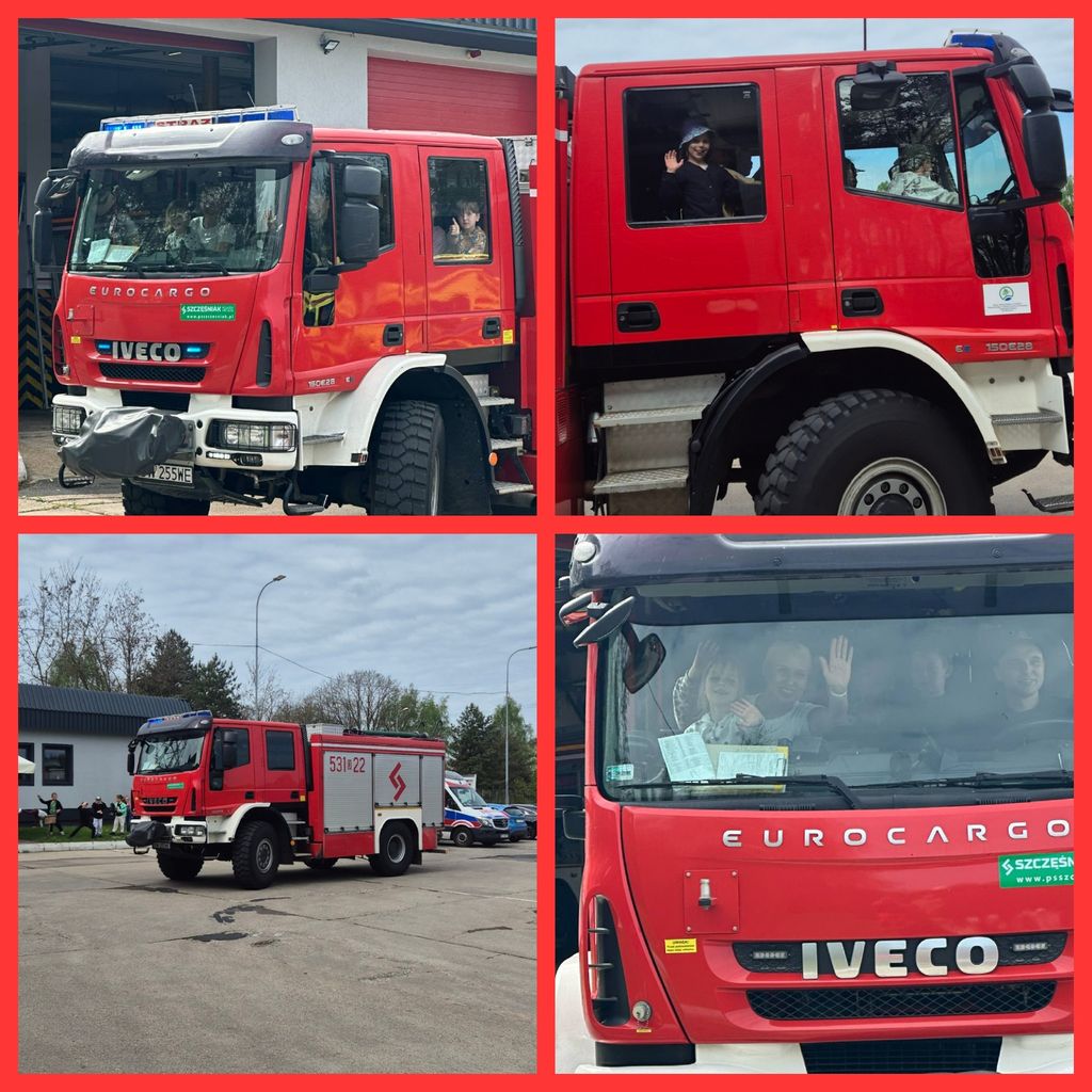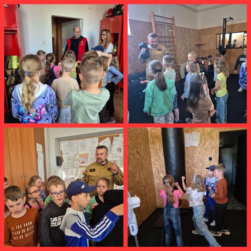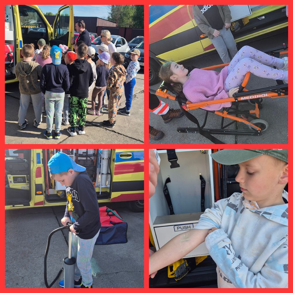 23 i 25 maja uczniowie klas pierwszych wybrali się na pieszą wycieczkę do Zespołu Ratownictwa Medycznego oraz Komendy Powiatowej Państwowej Straży Pożarnej w Polkowicach. Na miejscu dzieci zapoznały się z pracą ratownika medycznego i strażaka. Poznały również pracę dyspozytora, który przyjmuje zgłoszenia i wysyła zespoły ratownicze na miejsce zdarzenia. Tu miały możliwość wykazania się swoją wiedzą na temat znajomości numerów alarmowych oraz zgłaszania zdarzenia przez telefon. Ogromną atrakcją wycieczki było przymierzanie strażackich strojów, zjazd strażaków po ślizgu, czyli „strażackiej rurze”, a także karetka pogotowia i wóz strażacki, do których dzieci mogły wejść, zobaczyć znajdujący się w nich sprzęt, a nawet położyć się na noszach oraz użyć sygnałów dźwiękowych. Niesamowitym przeżyciem była też przejażdżka wozem strażackim oraz lanie wody ze strażackich węży. Dzieci oglądały wszystko z ogromnym entuzjazmem i wróciły z wycieczki pełne niezapomnianych wrażeń.