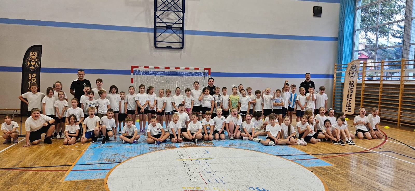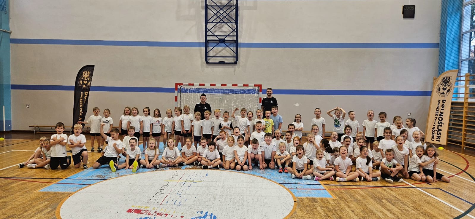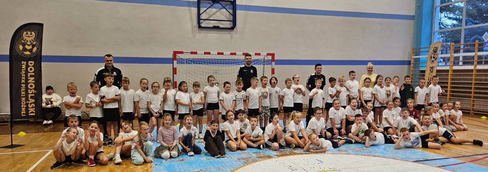17 października odbyły się zajęcia sportowe w ramach projektu "zDolnośląskie Dzieciaki", prowadzone przez przedstawicieli Dolnośląskiego Związku Piłki Nożnej. Wzięli w nich udział wszyscy uczniowie klas 1-3. Zajęcia miały charakter ogólnorozwojowy i były ukierunkowane na poprawę koordynacji ruchowej, szybkości oraz zwinności dzieci w wieku wczesnoszkolnym. Uczniowie uczestniczyli w ćwiczeniach, które wymagały zwinności, równowagi i koncentracji. Dzieci były bardzo aktywne i chętnie uczestniczyły w zajęciach. Doskonaliły swoją sprawność ruchową, wzmacniały mięśnie całego ciała i rozwijały umiejętność współpracy w grupie. Wykazywały się przy tym dużym zaangażowaniem, współpracowały ze sobą i przestrzegały zasad fair play. Ćwiczenia sprawiły uczestnikom wiele radości i motywowały do dalszej aktywności fizycznej.