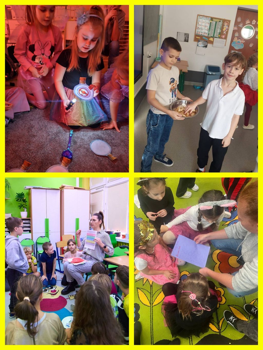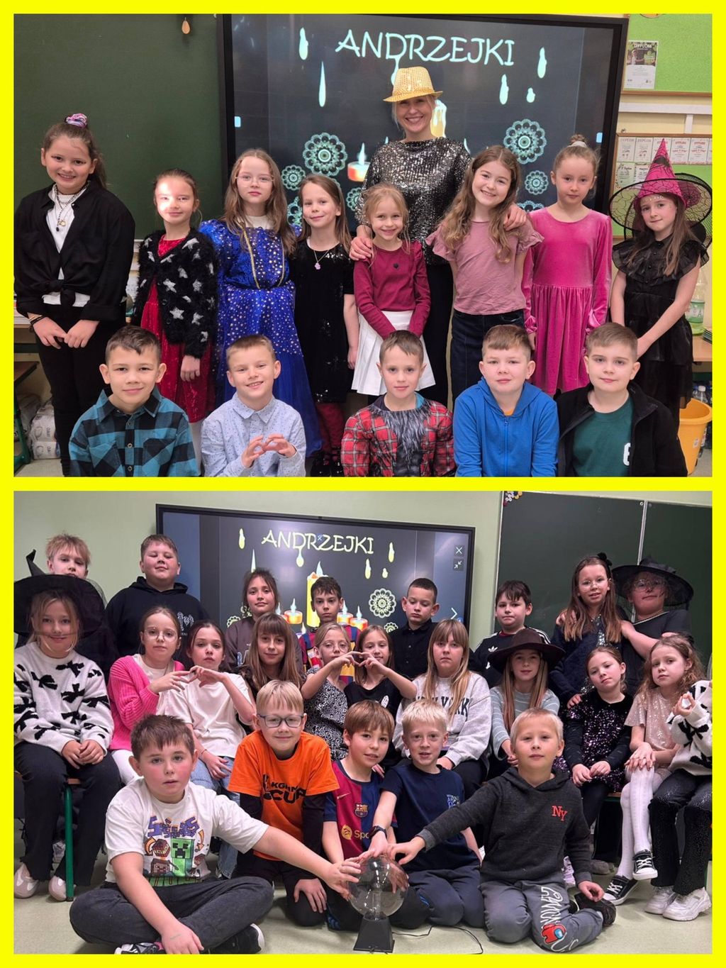 28 listopada w naszej szkole odbyły się zabawy andrzejkowe dla uczniów klas 1-3. Dzieci wzięły udział w tradycyjnych wróżbach i zabawach związanych z andrzejkowymi zwyczajami. W klasach przygotowano specjalne stanowiska, przy których uczniowie mogli m.in.: losować przyszłe zawody, wybierając karteczki z ukrytymi podpowiedziami, przekładać buty, sprawdzając, kto pierwszy „dotrze” do drzwi i jako pierwszy spełni swoje marzenie, wróżyć z serc z imionami, odczytując, jakie imię pojawi się w ich przyszłości, wybierać magiczne przedmioty, które symbolizowały szczęście, odwagę, spełnienie marzeń lub dobrą zabawę. Nie zabrakło również tańców, ciasteczek wróżbą, wspólnych śpiewów oraz słodkiego poczęstunku, przygotowanego przez rodziców. Dzieciom bardzo podobała się atmosfera tajemnicy i magii, a wróżby wywoływały wiele emocji i radości. Zabawy andrzejkowe okazały się wspaniałą okazją do integracji klas, rozwijania wyobraźni oraz wspólnej, radosnej zabawy.