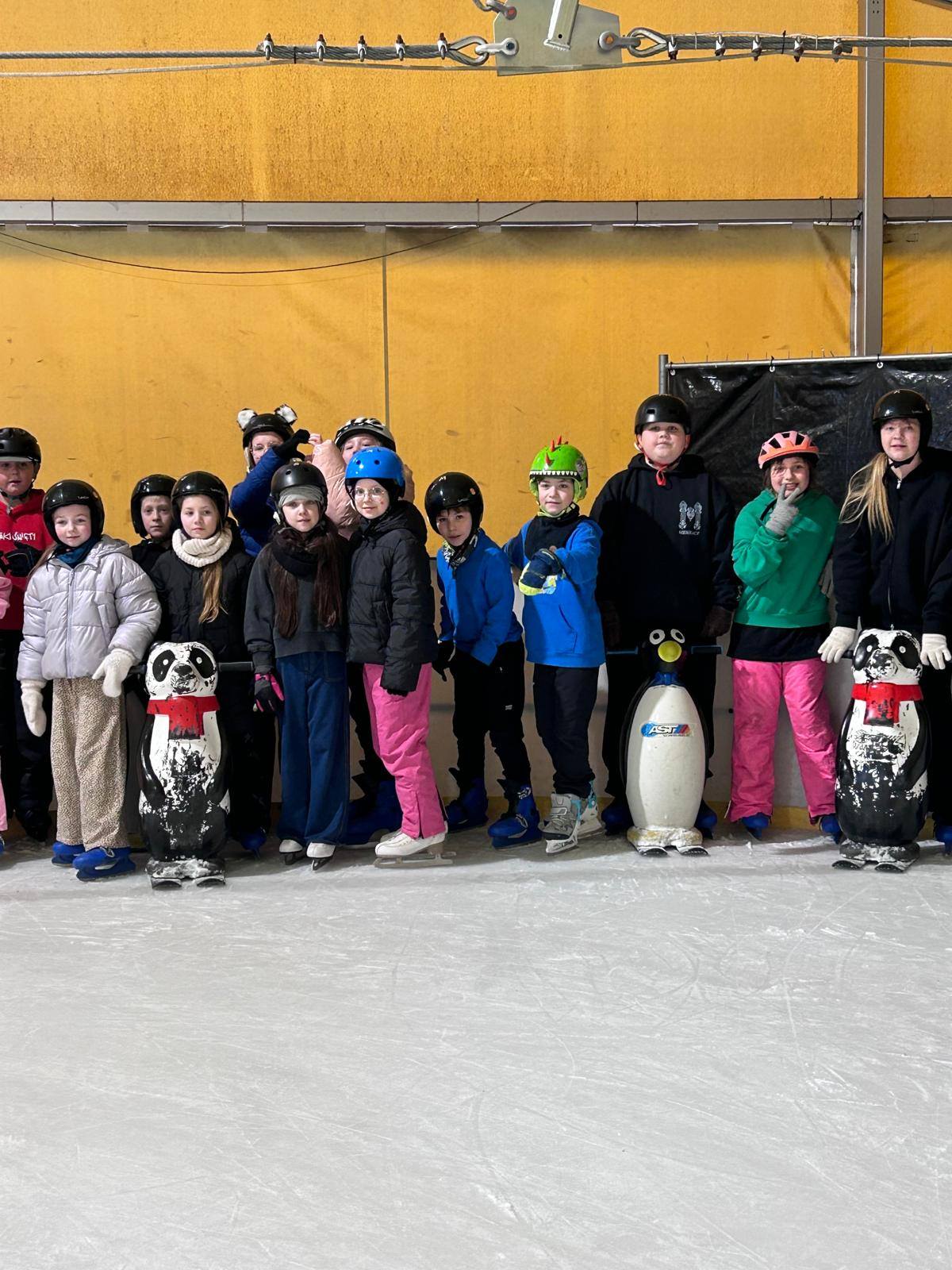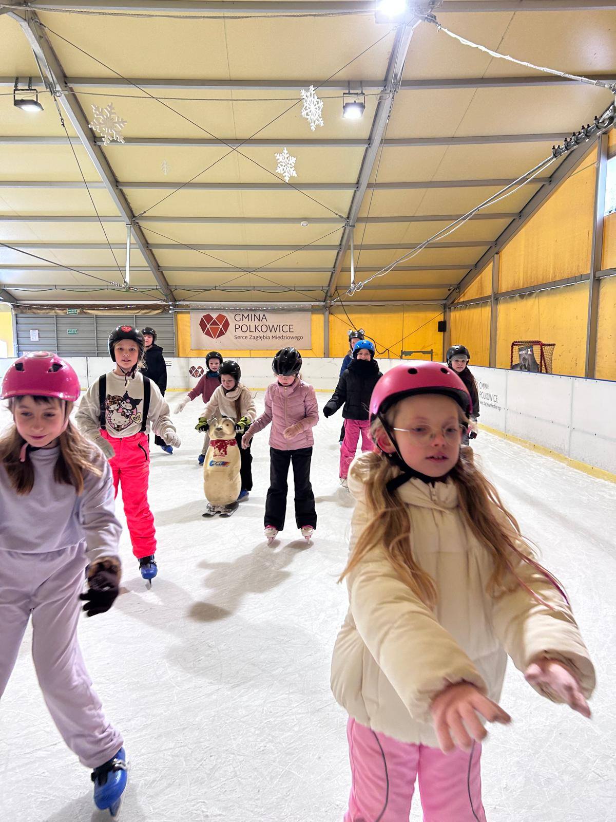 Po feriach zimowych uczniowie z klasy 3b odbyli lekcję w.f. na polkowickim lodowisku. Zajęcia były wspaniałą zabawą. Łyżwiarze z zaangażowaniem doskonalili jazdę i hamowanie. Kto wie... może wśród nich są przyszli olimpijczycy.