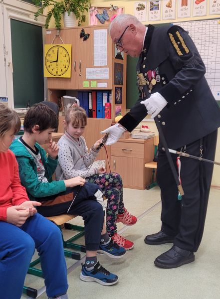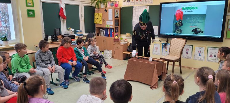 Grudzień to miesiąc Barbórkowy. Z tej okazji uczniów kilku klas odwiedzili górnicy z kopalni miedzi. Opowiedzieli o ciężkiej pracy górników, o tradycjach barbórkowych, o patronce górników - Świętej Barbarze, o górniczym mundurze galowym i o Skarbku, który strzeże podziemnych skarbów. Dzieci mogły zobaczyć górniczy kordzik i szpadę, a także górnicze medale i odznaczenia. Dowiedziały się również, jakie kolory piór może mieć górnicze czako i co dany kolor oznacza, jak również, że w naszych kopalniach, oprócz rudy miedzi, wydobywana jest także sól kamienna. Każdy dostał w prezencie po kilka bryłek soli (oczywiście dzieci sprawdziły, czy jest słona ;)).