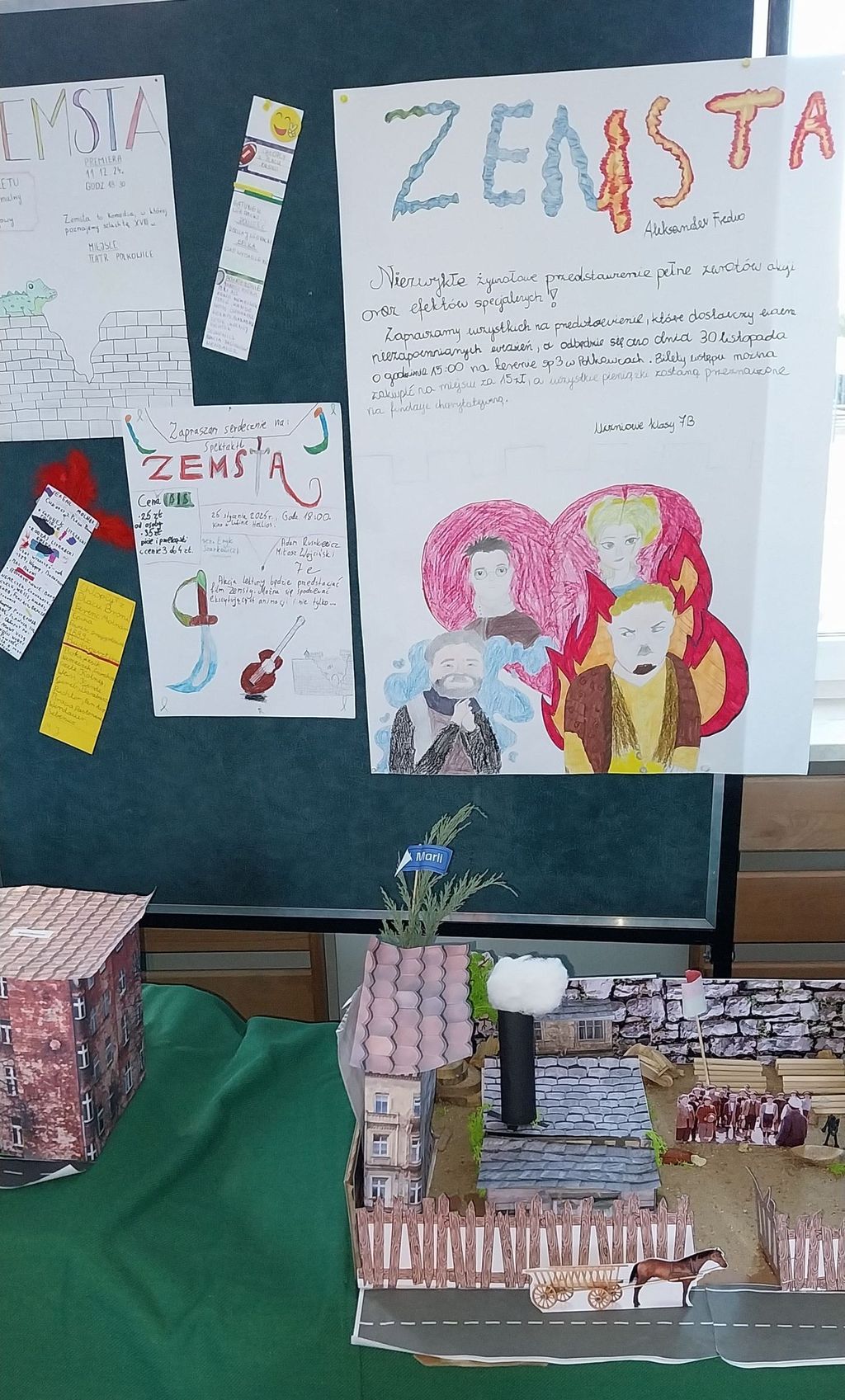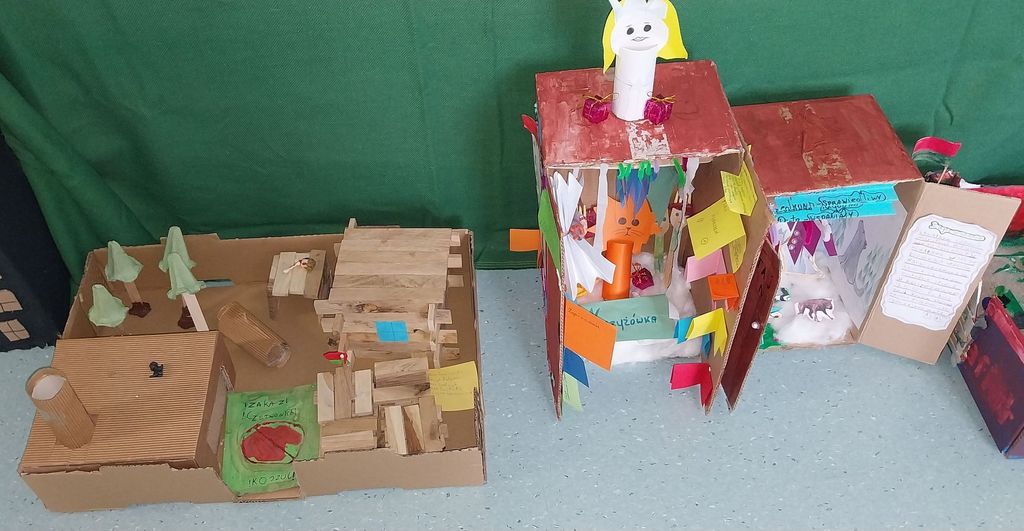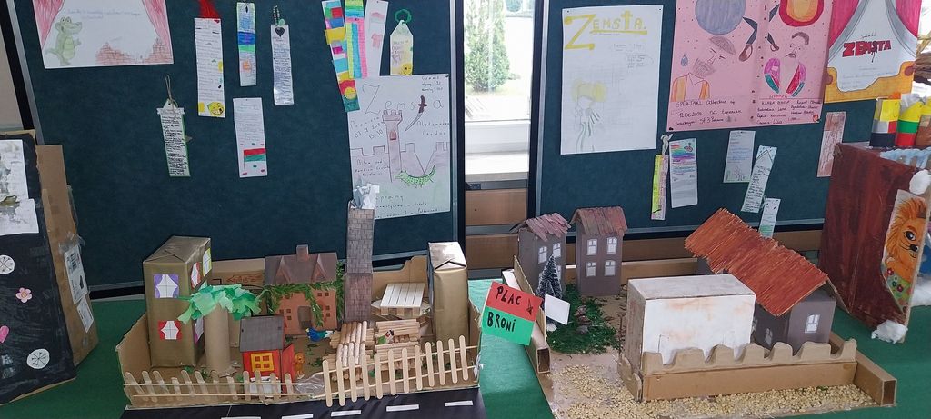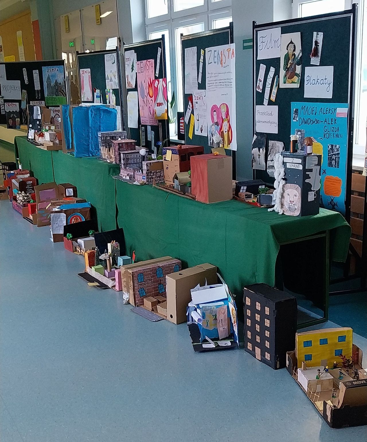 W czasie omawiania lektur w klasach 4 - 8 uczniowie często pracują metodą projektu. Efektem ich pracy są świetnie wykonane prace literacko- plastyczne. W tym roku wykonali makiety, lekturę w pudełku, zakładki do książek, plakaty, afisze teatralne, które były wystawione na holu szkolnym w czasie zebrań z rodzicami podsumowującymi I okres nauki. Wystawę przygotowały polonistki.