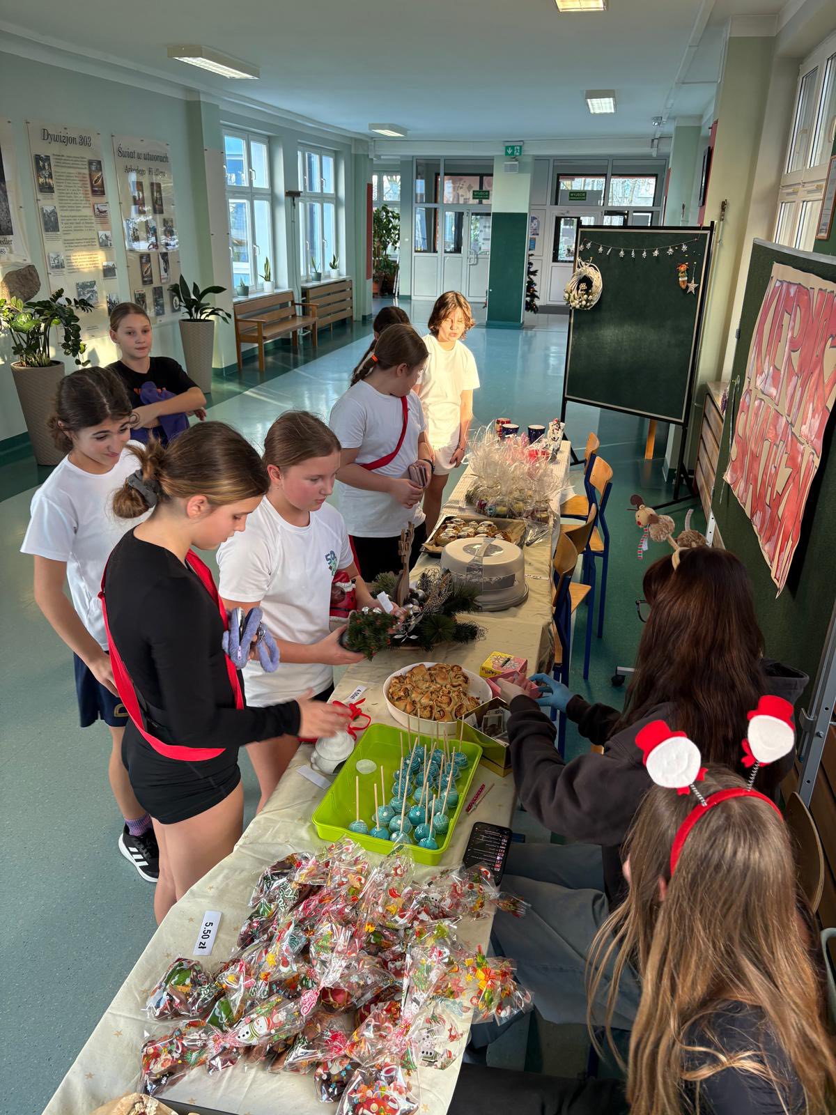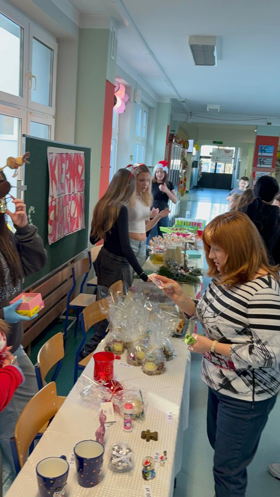 Za nami finał szkolnego kiermaszu mikołajkowego, który odbył się w szkole przy ul. Ociosowej. Wydarzenie przebiegło w radosnej, świątecznej atmosferze. Organizatorami kiermaszu były klasy: 8a, która zebrała 694,50 zł oraz 8c, która zebrała 883 zł. W sprzedaży były m.in.: babeczki, ciasteczka, koktajle. Dziękujemy wszystkim za wsparcie, zaangażowanie i każdy zakup. Razem pokazaliśmy, że potrafimy pomagać i tworzyć wyjątkowy, świąteczny klimat.