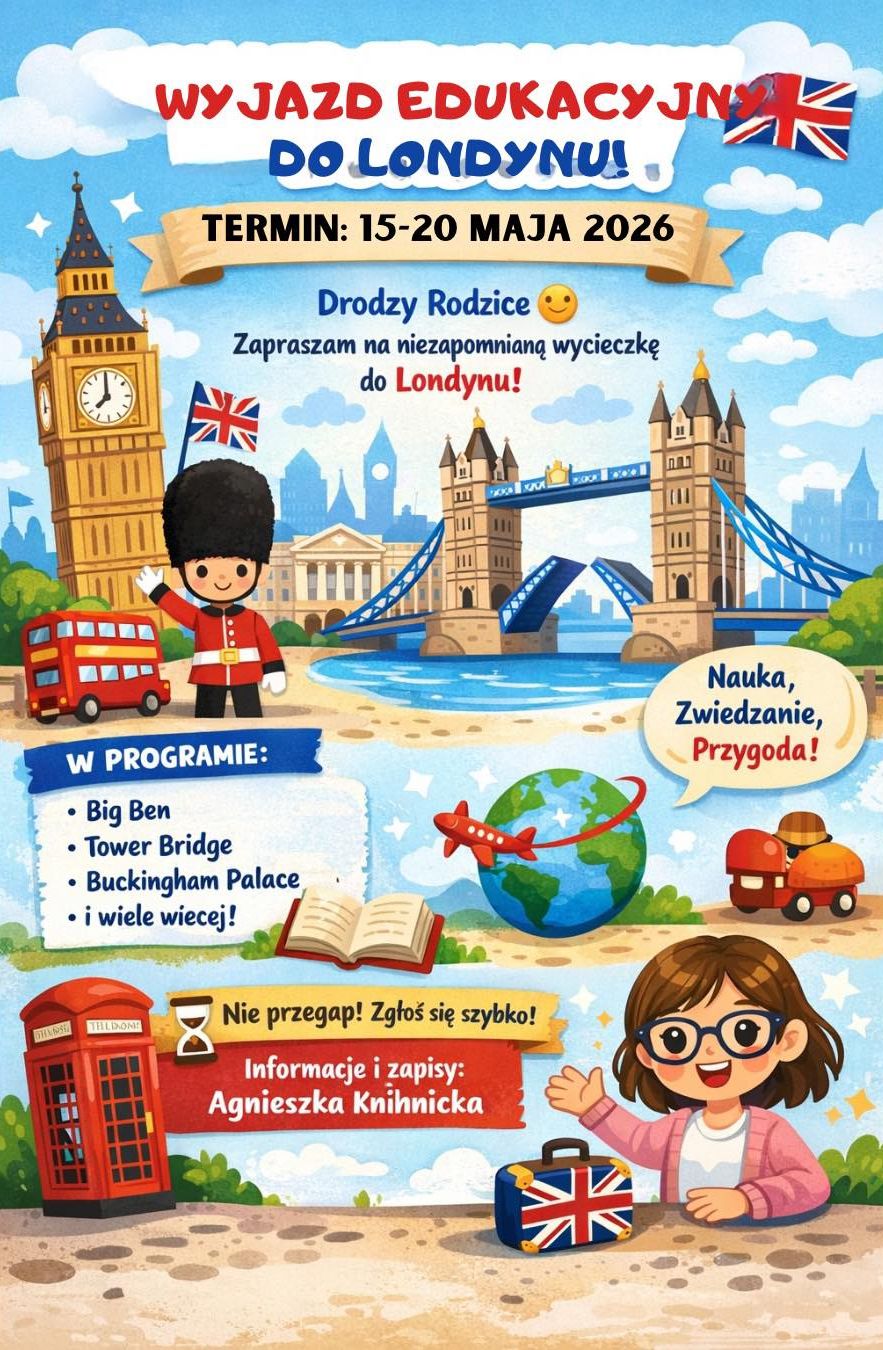 Mam przyjemność zaprosić uczniów na wyjątkowy wyjazd edukacyjny do Londynu w terminie 15 – 20 maja 2026r.
