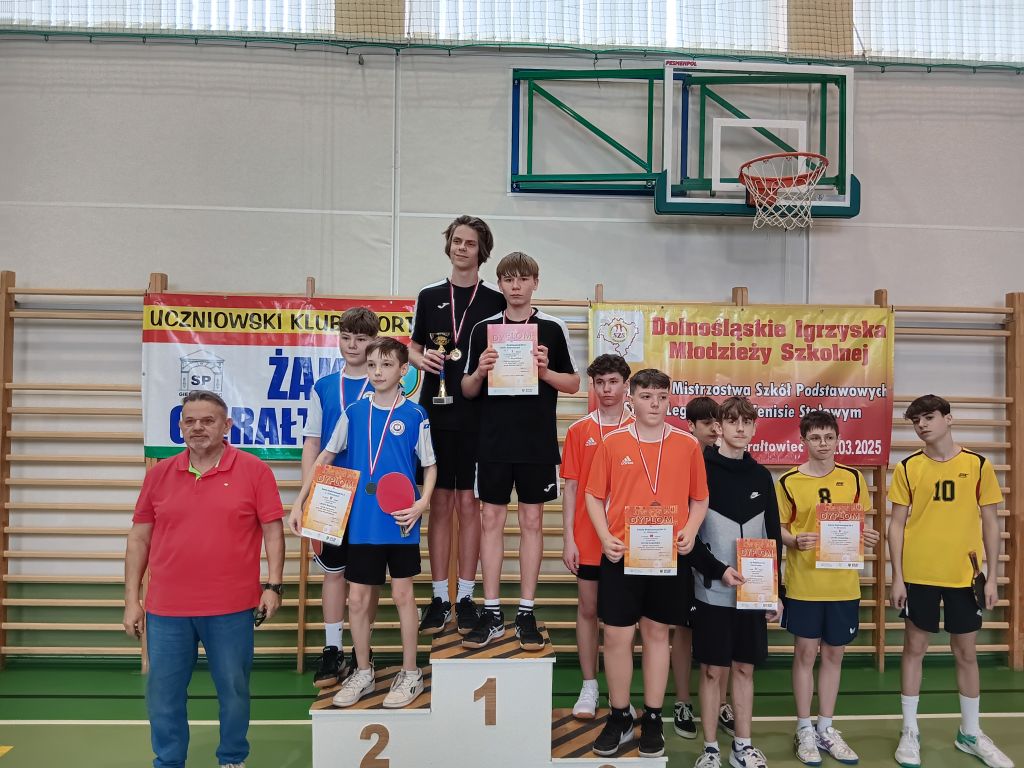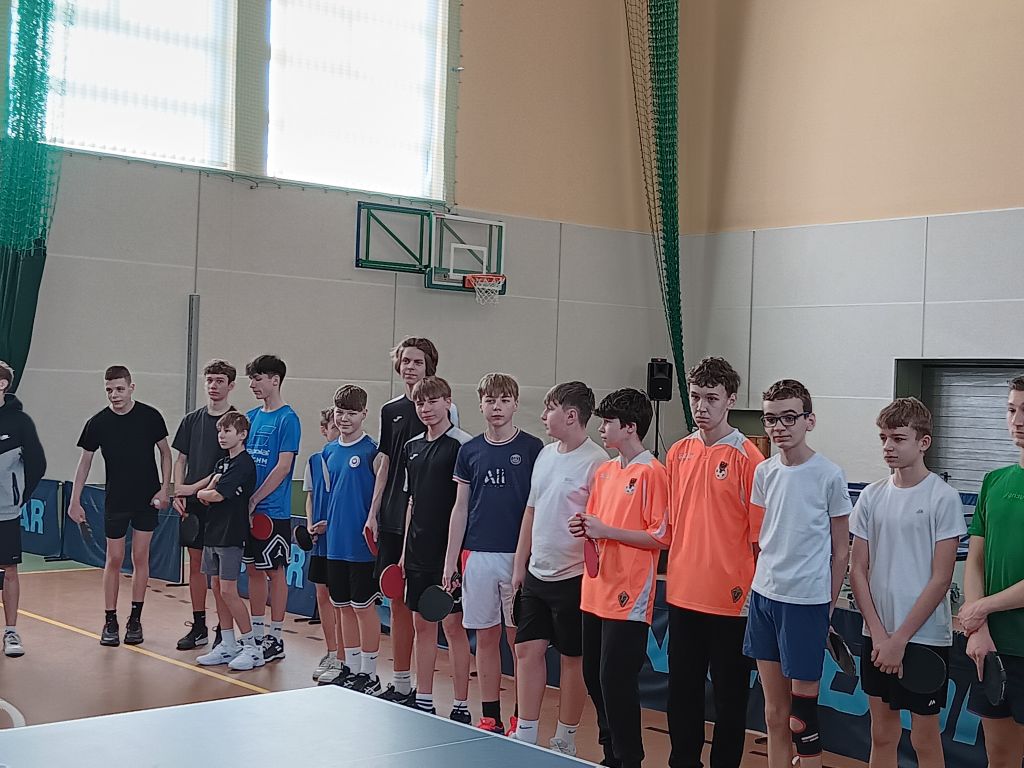 W dniu 12 marca 2025r. W Gierałtowcu odbyły się Drużynowe Mistrzostwa Strefy Legnickiej w tenisie stołowym chłopców. W zawodach wzięło udział 9 drużyn. Nasza szkołę reprezentowało dwóch zawodników: Szymon Florek z klasy 8d oraz Korneliusz Pyrzeński z klasy 8b. Ostatecznie nasi tenisiści zajęli I miejsce i zakwalifikowali się do Finału Wojewódzkiego w Brzegu Dolnym, który odbędzie się 26 marca 2025r. Opiekunem podczas zawodów był Marcin Pawełko. Gratulacje.
