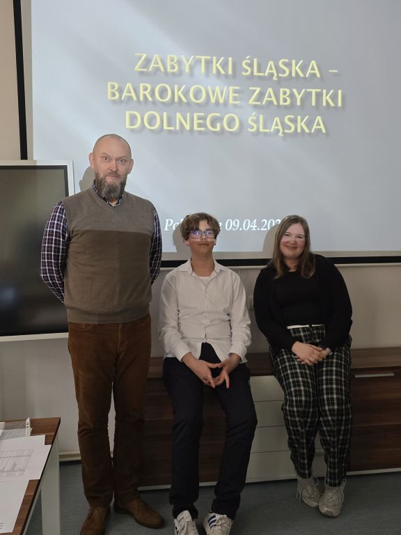 Barok na Dolnym Śląsku - to tegoroczny temat drużynowego konkursu powiatowego o Zabytkach Dolnego Śląska. Organizatorem konkursu, który odbył się 9 kwietnia br. był Powiatowy Ośrodek Doradztwa Metodycznego w Polkowicach. Nasza drużyna w składzie: Aleksandra Kaniewska, VIIB i Wojciech Miękisiak, VIIA wygrała ten trudny, interdyscyplinarny konkurs.