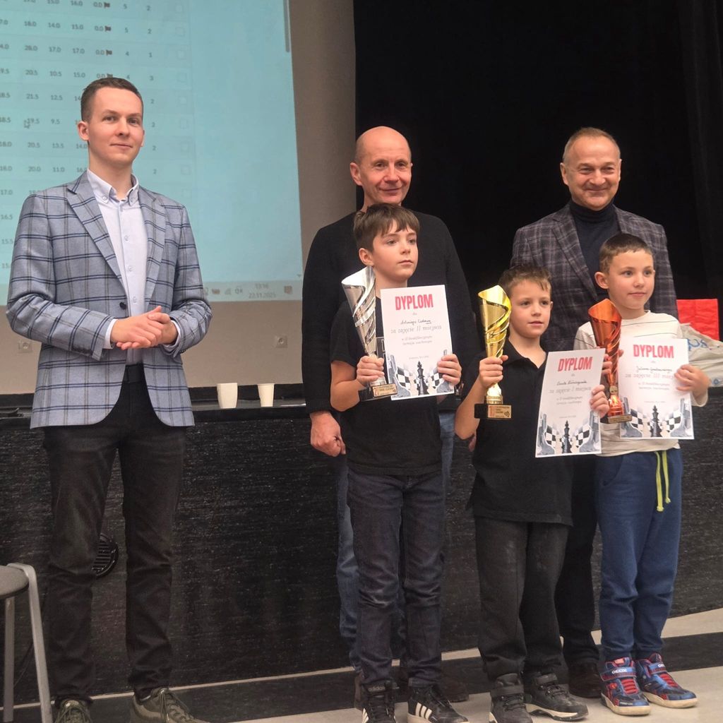 W sobotę 22 listopada w Grębocicach odbył się Turniej o Kategorie Szachowe zorganizowany przez pana Pawła Szadyko. Wzięło w nim udział 17 uczniów naszej szkoły. Gratulujemy Aleksandrze Walkowiak, która uzyskała III kategorię dziewcząt oraz Myronowi Kyrychenko, który zdobył IV kategorię. Ola zajęła też I miejsce wśród dziewcząt klas 4-6, natomiast wśród chłopców klas 1-3 niepokonany okazał się Karol Kołodziejczak. Serdecznie gratulujemy zwycięzcom. Wszystkim młodym szachistom życzymy jak najlepszych wyników.