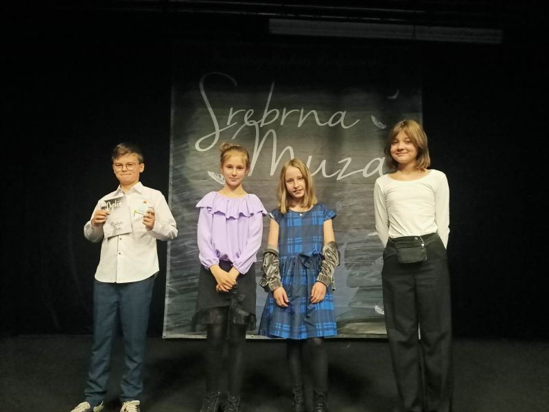 23 listopada odbył się XXVI Powiatowy Konkurs Recytatorski ,,Srebrna Muza”. W kategorii klas 4-6 nasza uczennica z klasy 6 c – Magdalena Jasińska – zajęła III miejsce, a w starszej kategorii również III miejsce zajęła Lena Domaros z klasy 8 c. Nagrodzonym dziewczętom i wszystkim uczestnikom gratulujemy!