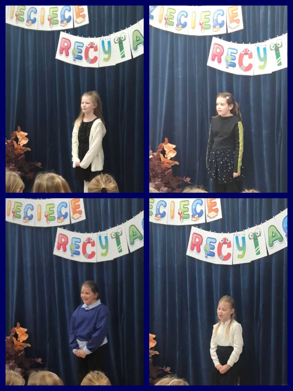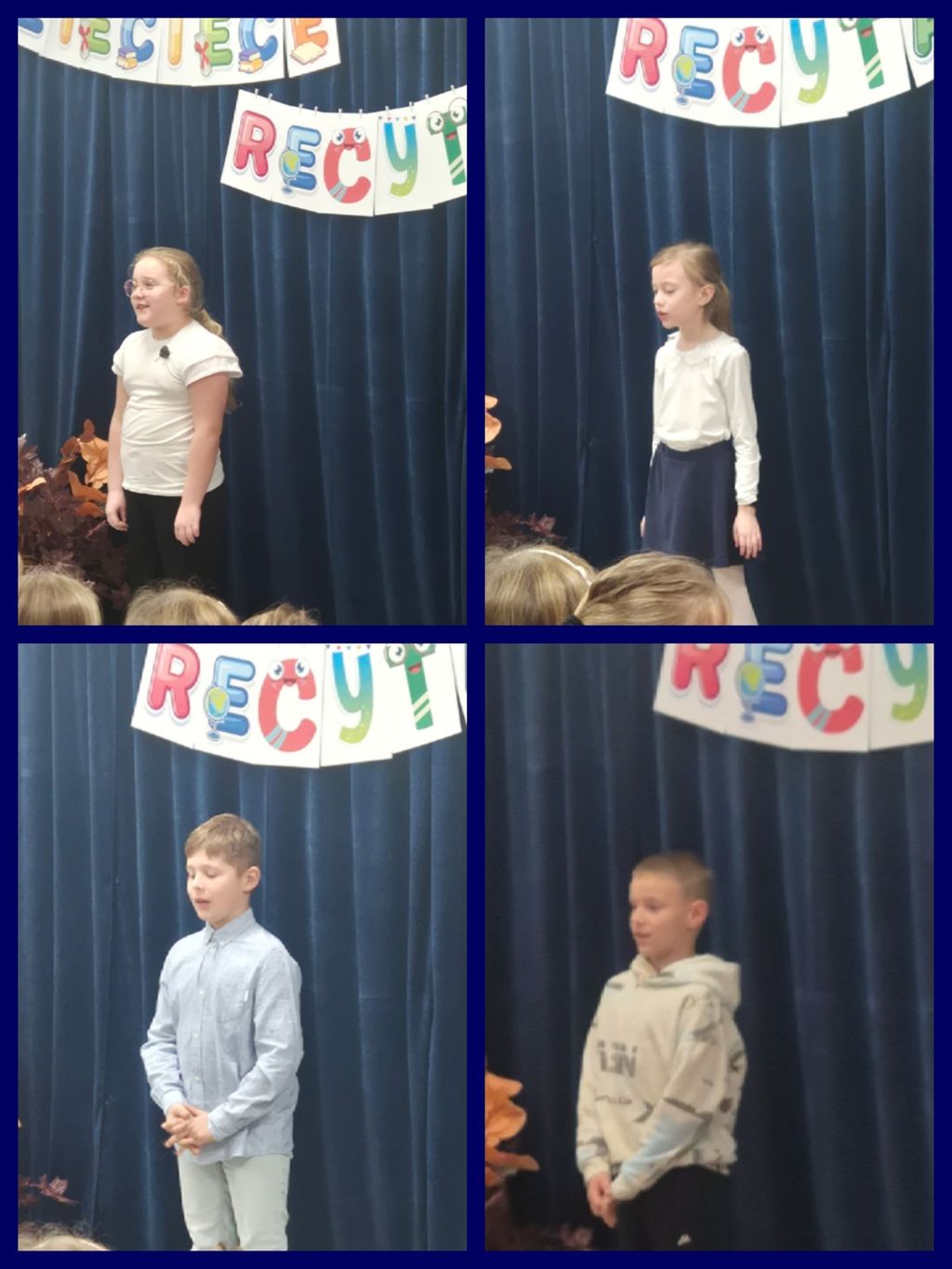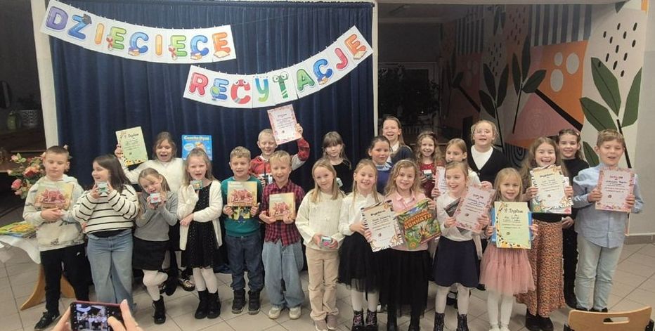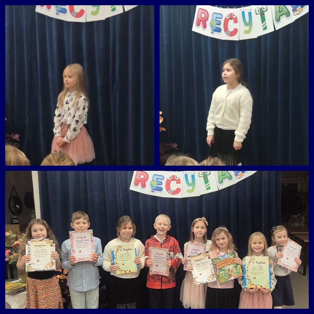 W dniach 17 i 18 listopada zorganizowano Szkolny Konkurs „Dziecięce recytacje”. Konkursowe zmagania przeprowadzono w dwóch kategoriach wiekowych: 17 listopada zaprezentowało się 22 uczniów klas 2-3, 18 listopada wzięło udział 18 uczniów klas 0-1.