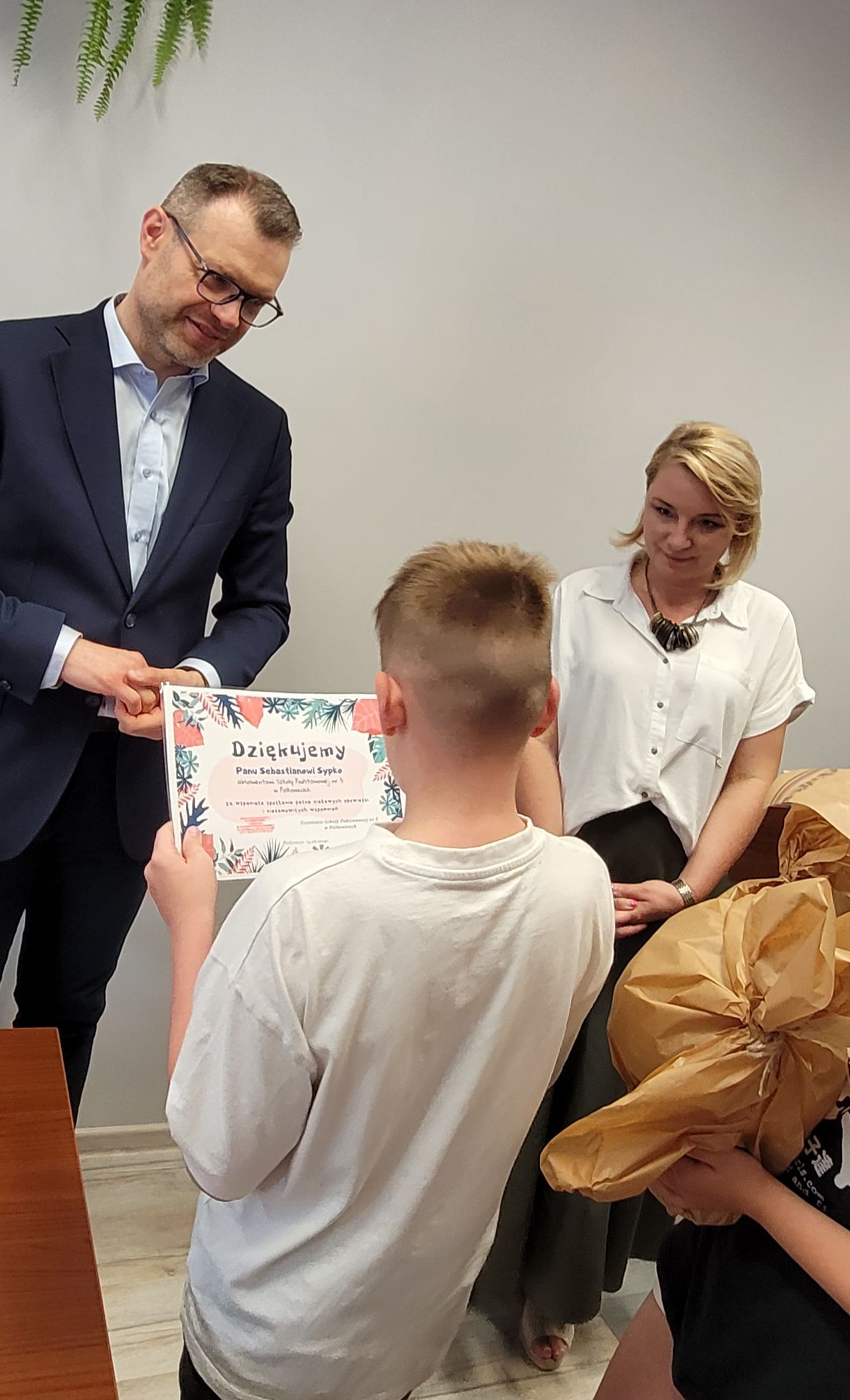 19 czerwca, odwiedził nas kolejny absolwent Szkoły Podstawowej nr 3, Pan Sebastian Sypko – wiceburmistrz Polkowic. Spotkanie miało charakter spaceru. Uczniowie, pod okiem wychowawcy i Pani Dyrektor Adriany Ciupki oprowadzili gościa po szkole. Pan Sebastian opowiadał o swoich szkolnych latach, wspominał nauczycieli, pokazał też dzieciom, gdzie były różne szkolne pracownie, a także biblioteka, czytelnia, świetlica, siłownia, czy harcówka... Okazało się, że były one w zupełnie innych miejscach, niż teraz... a niektórych z tych miejsc już nie ma... Dzieci z zainteresowaniem słuchały ciekawych opowieści i próbowały wyobrażać sobie, jak nasza szkoła wyglądała dawniej... Był to bardzo sentymentalny spacer.
