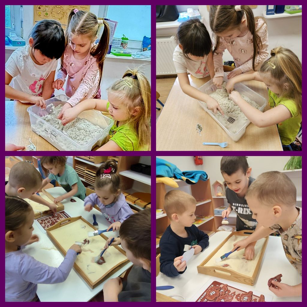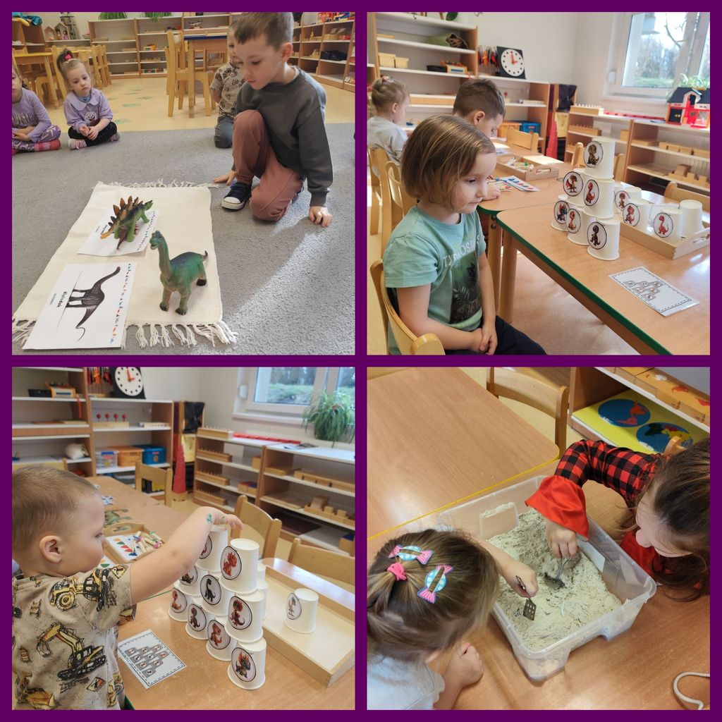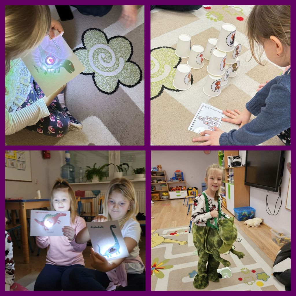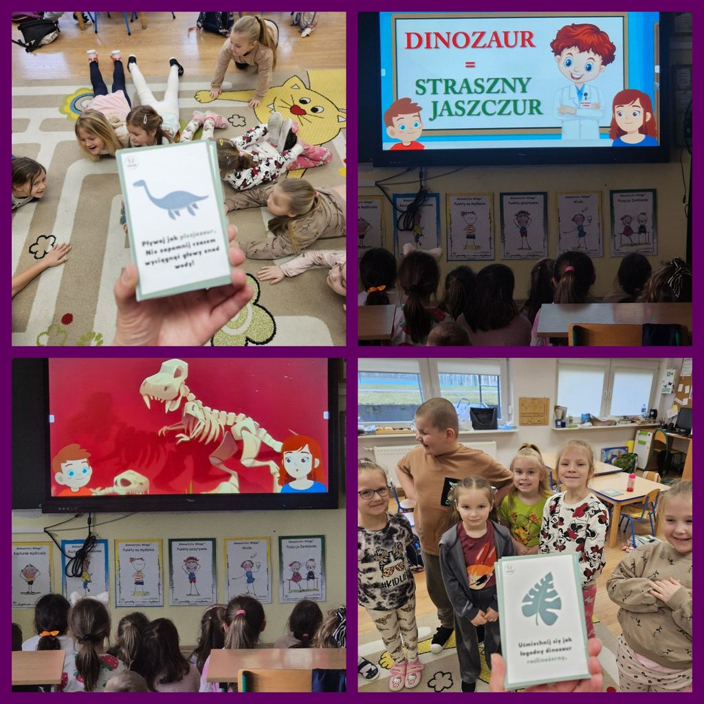 26 lutego przypada nietypowe święto - Dzień Dinozaura. Nasi najmłodsi uczniowie z radością i ogromną ciekawością poznawali historię dinozaurów, ich wygląd, to, czym się żywiły oraz jak wyginęły. Dzieci rozpoznawały i podawały nazwy dinozaurów - były tyranozaury, triceratopsy, diplodoki, pterodaktyle i sporo innych. Uczniowie dzielili dinozaury na większe i mniejsze, mięsożerne i roślinożerne. Brali również udział w różnych konkurencjach np. tropieniu dinozaura po właściwych śladach, odgadywaniu zagadek oraz w zabawach ruchowo – naśladowczych. Dzieci obejrzały również film edukacyjny, pełen wielu ciekawostek o dinozaurach. Dużo radości wywołały prace plastyczno - techniczne. Było malowanie na dużym formacie, a także wykonanie masy aksamitnej, w której dzieci odbijały figurki dinozaurów, tworząc piękne skamieliny. Był to szczególny dzień, pełen radosnych wrażeń