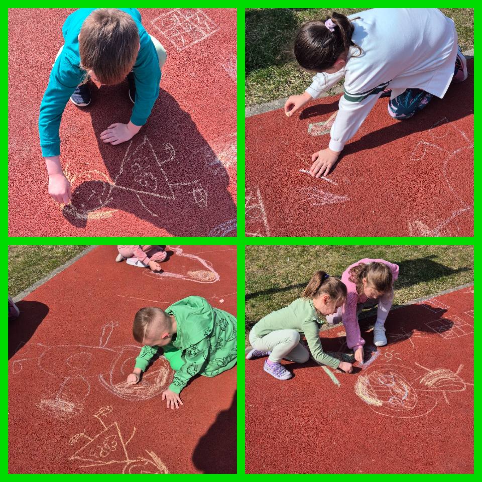 Najmłodsi uczniowie w różnych sposób powitali Panią Wiosnę. Korzystając z pięknej wiosennej pogody, większość spędziła czas na spacerach oraz zabawach ruchowo-zręcznościowych na miejskich placach zabaw, niektórzy rysowali kredą portrety Pani Wiosny, byli też tacy, którzy wykonali dzieła pt." W marcu, jak w garncu" i "upichcili" smaczne i bardzo kolorowe gofry owocowe. Byli też i tacy, którzy spacerowali z piękną Marzanną i odbyli praktyczne szkolenie z instruktorem działkowym RODOS "Relaks", podczas którego dowiedzieli się, jak przygotować ogródek na nadejście wiosny. Wiosno przybywaj!!!