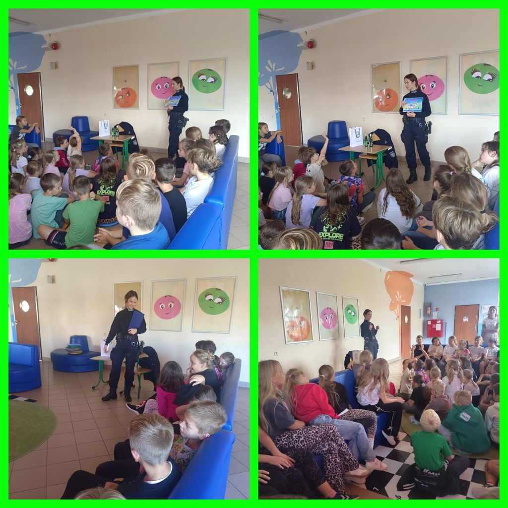 Za nami bardzo ważne spotkania dotyczące bezpieczeństwa. Przedszkolaki oraz uczniowie klas pierwszych spotkali się z funkcjonariuszkami Straży Miejskiej w Polkowicach, a klasy drugie i trzecie zasady bezpieczeństwa omawiały z Panią Anitą Dubaniowską - dzielnicową Komendy Powiatowej Policji w Polkowicach. To były bardzo ważne spotkania, podczas których uczniowie zapoznani zostali przede wszystkim z zasadami bezpieczeństwa w drodze do szkoły. Omówione zostały również zasady reagowania w różnych trudnych sytuacjach, np. w kontaktach z nieznajomymi lub obcymi zwierzętami. Było wiele pytań, na które uczniowie otrzymali rzeczowe odpowiedzi.