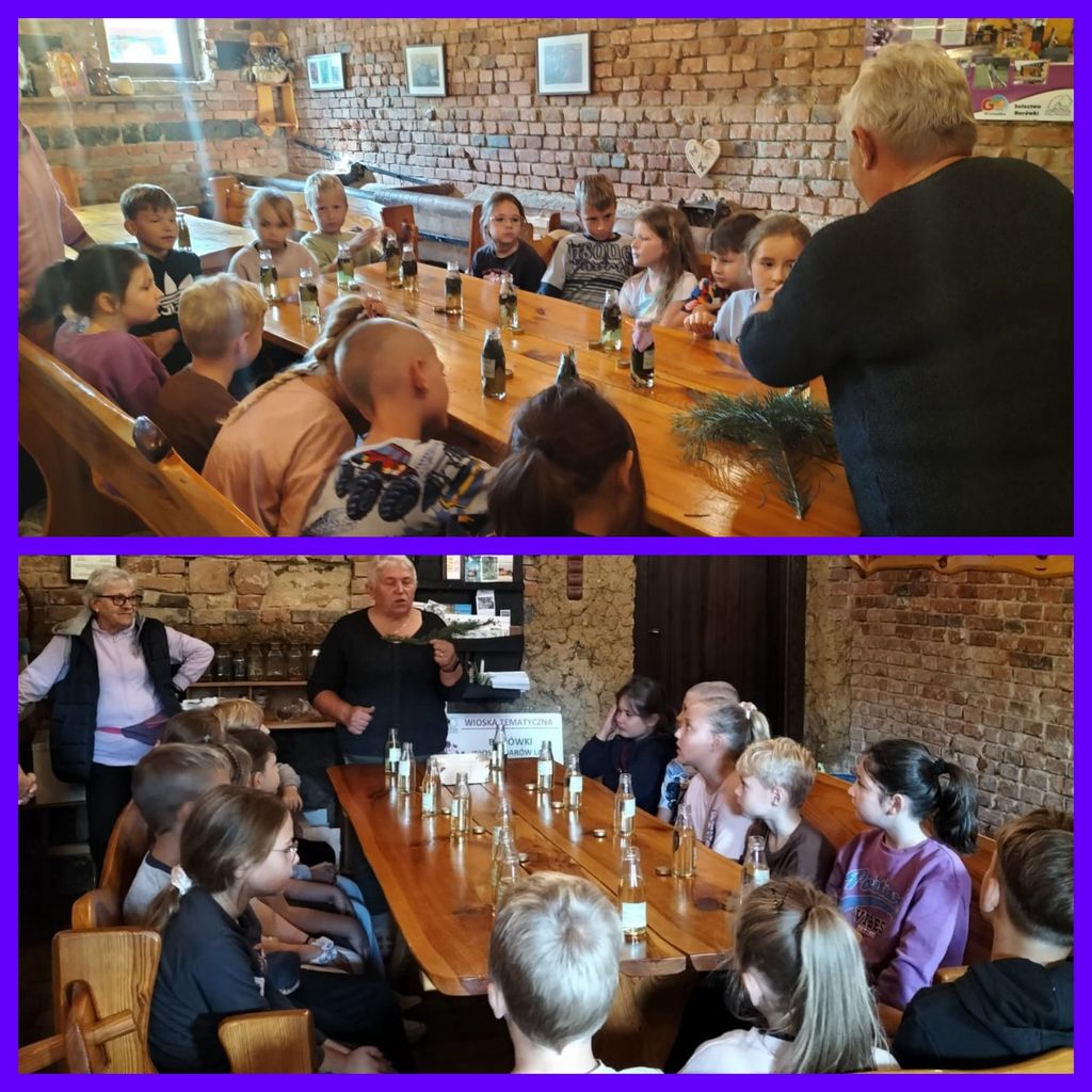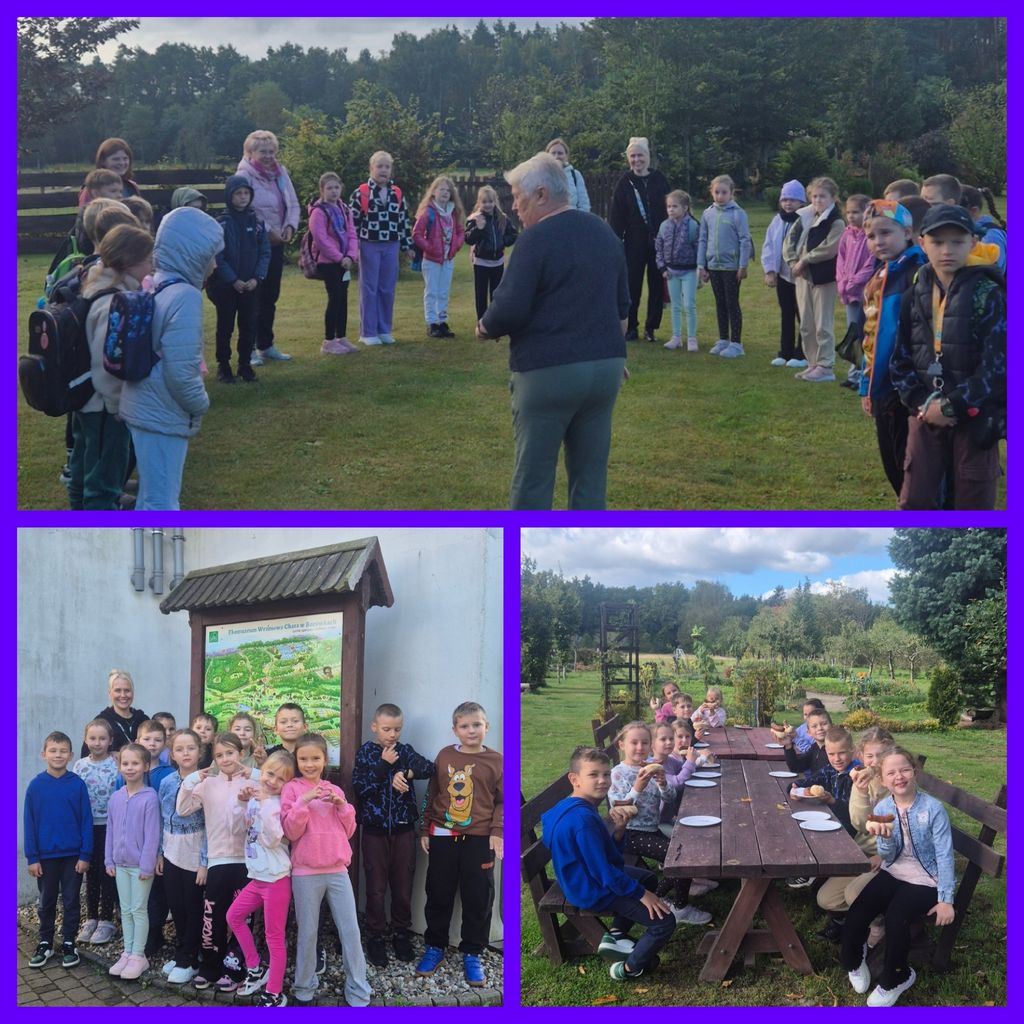 23 września klasy 2b i 2d wybrały się na edukacyjno – rekreacyjną wycieczkę do Wrzosowej Krainy w Borówkach, prawdziwej oazy ciszy i spokoju. Dzieci, wraz z gospodyniami, wybrały się do pięknego jesiennego ogrodu, gdzie wieloma zmysłami poznawały rosnące tam zioła i oglądały jesienne rośliny. Podczas warsztatów samodzielnie stworzyły wypełnione ziołami, cudnie pachnące olejki do kąpieli i masażu. Był też czas na radosne brykanie po ogromnym zielonym terenie, a po nim kiełbaski z ogniska, które tego dnia, w tym urokliwym miejscu, smakowały wręcz wybornie. Wycieczka była dla wszystkich pełna niesamowitych i niezapomnianych wrażeń.